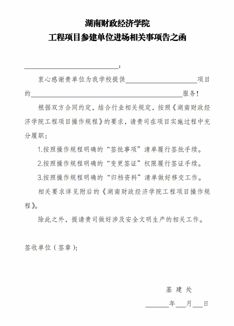 2026世界杯官网工程项目参建单位进场相关事项告之函