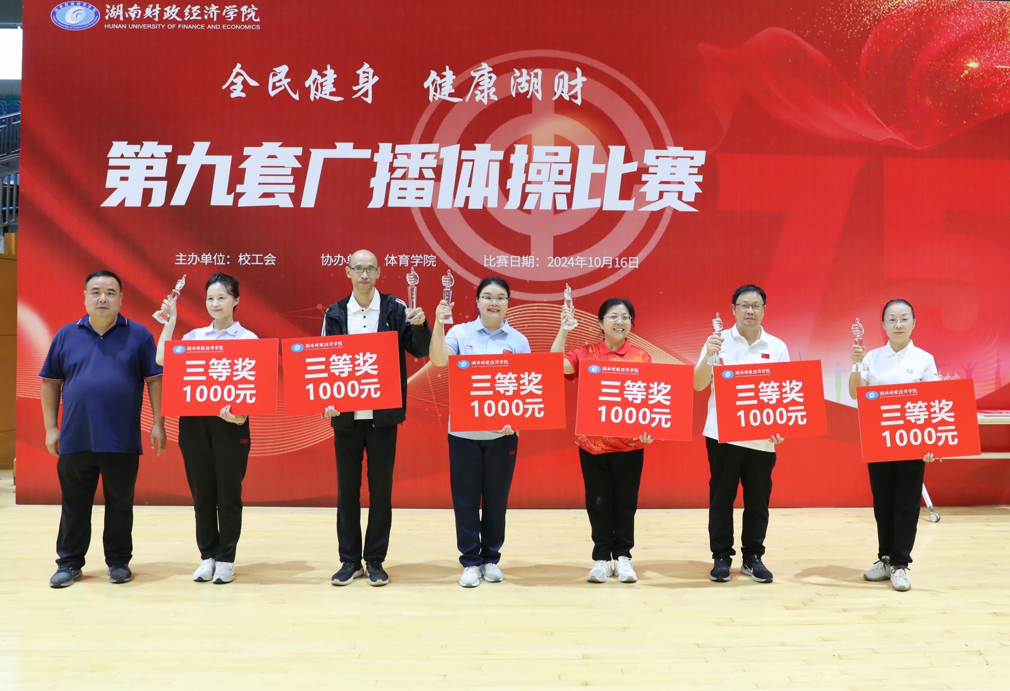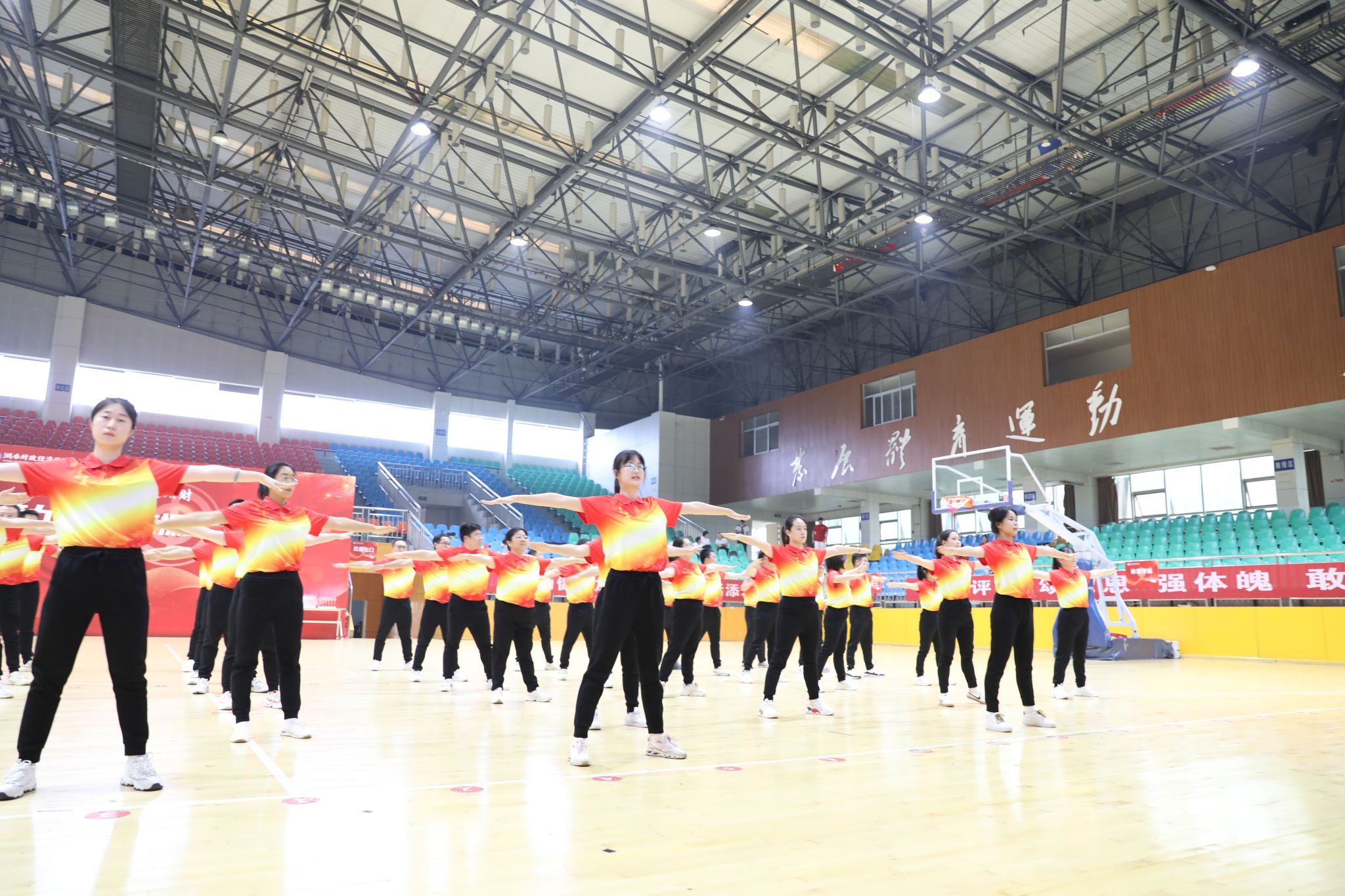 (本网讯)为大力推进教职工健身运动,丰富广大教师的业余生活,10月16日下午,由校工会主办,体育学院协办的“全民健身 健康湖财”2024年学校教职工第九套广播体操比赛于10月16日下午在主校区体育馆拉开了帷幕。全校共有18个分工会代表队参加比赛。
