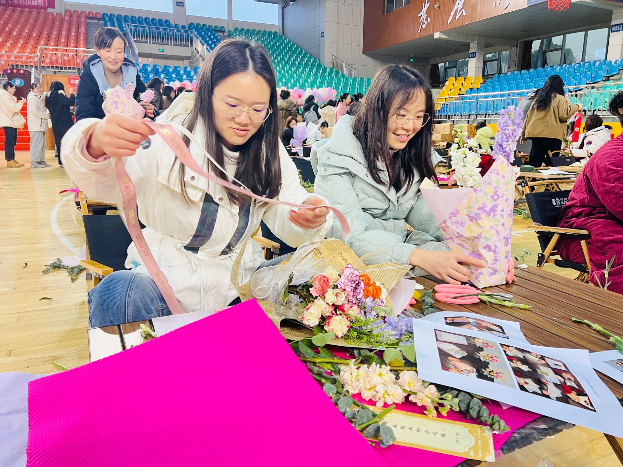 活动现场花香四溢,工作人员提前准备好花材和剪刀,大家充分发挥想象力和创作力,一边交流插花心得,一边拍照留念,记录下这美好的瞬间。在欢声笑语的气氛里,完成了一个个别出心裁的花艺作品。