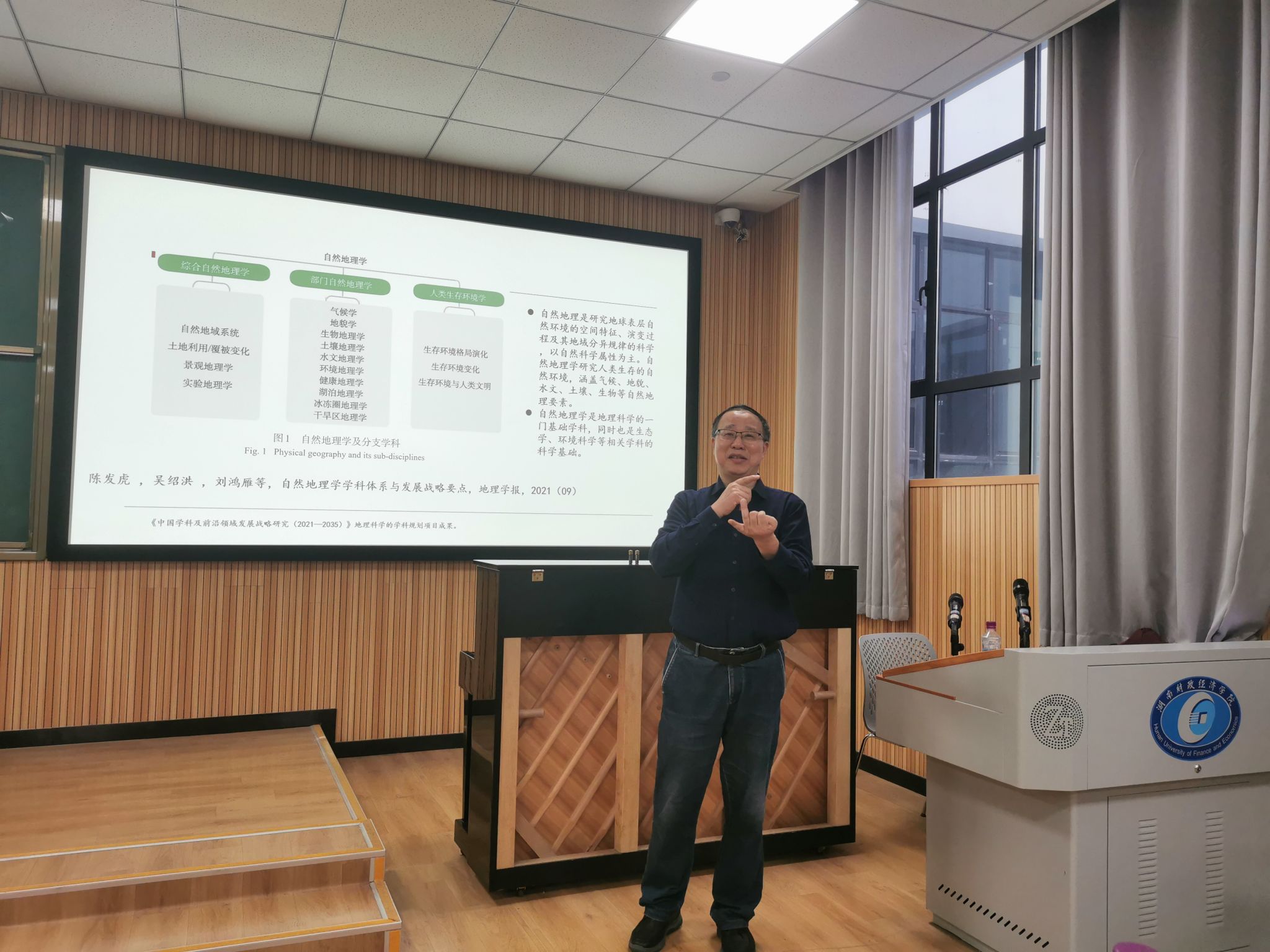 (本网讯)10月30日下午,湖南师范大学地理科学学院院长周国华教授应经济地理学院邀请来校为24级新生作《认识地理》主题讲座。讲座由经济地理学院副院长苏昌贵主持,经济地理学院学科办、教务办、两系主任以及全体24级新生200余人聆听了讲座。