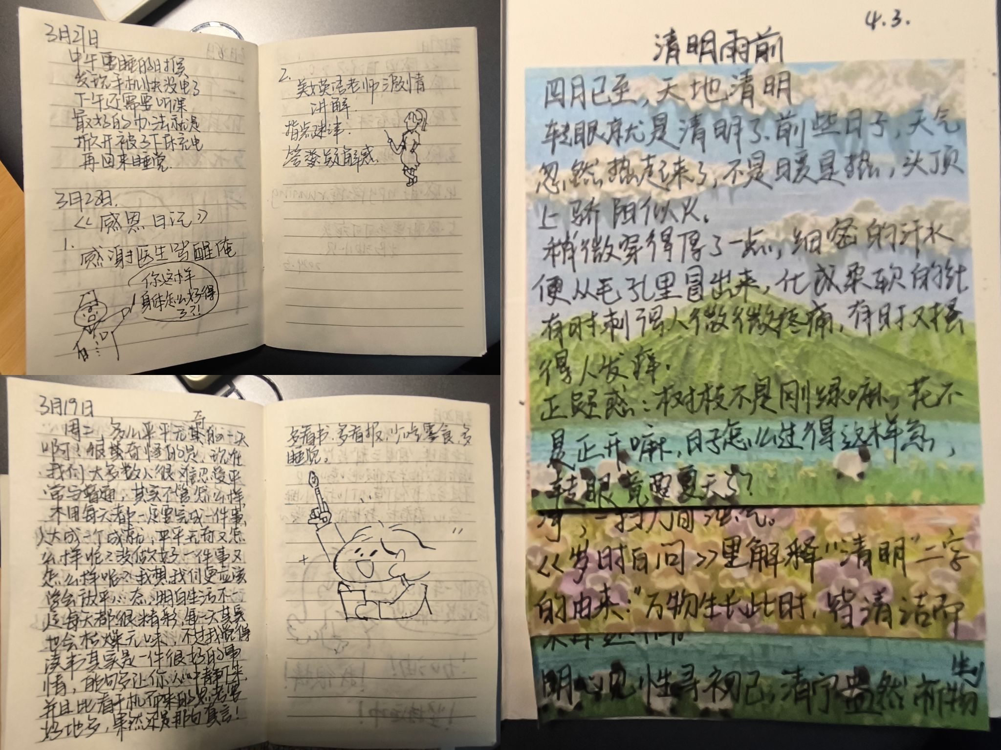本次活动面向全院师生,要求通过随笔、朋友圈和日记等多种形式记录2至3件当天发生的幸福小事去发掘幸福、积累幸福、感悟幸福,从而减轻繁重的学业和繁琐的工作带来的压力,善用幸福点滴为快乐生活续杯赋能。同学们的幸福日记精彩纷呈,从点滴日常里寻觅确幸,于心灵旷野中捕捉幸福。