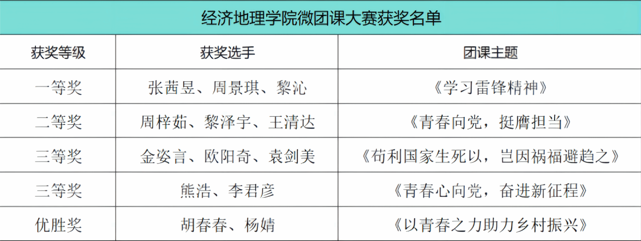 (本网讯)3月21日上午,经济地理学院2025年“青春向党 挺膺担当”微团课大赛在主校区3108教室圆满落幕。本次大赛作为深化团员青年思想引领的重要载体,通过“小切口”展现“大主题”,全院5支参赛团队以青春视角诠释新时代使命担当。