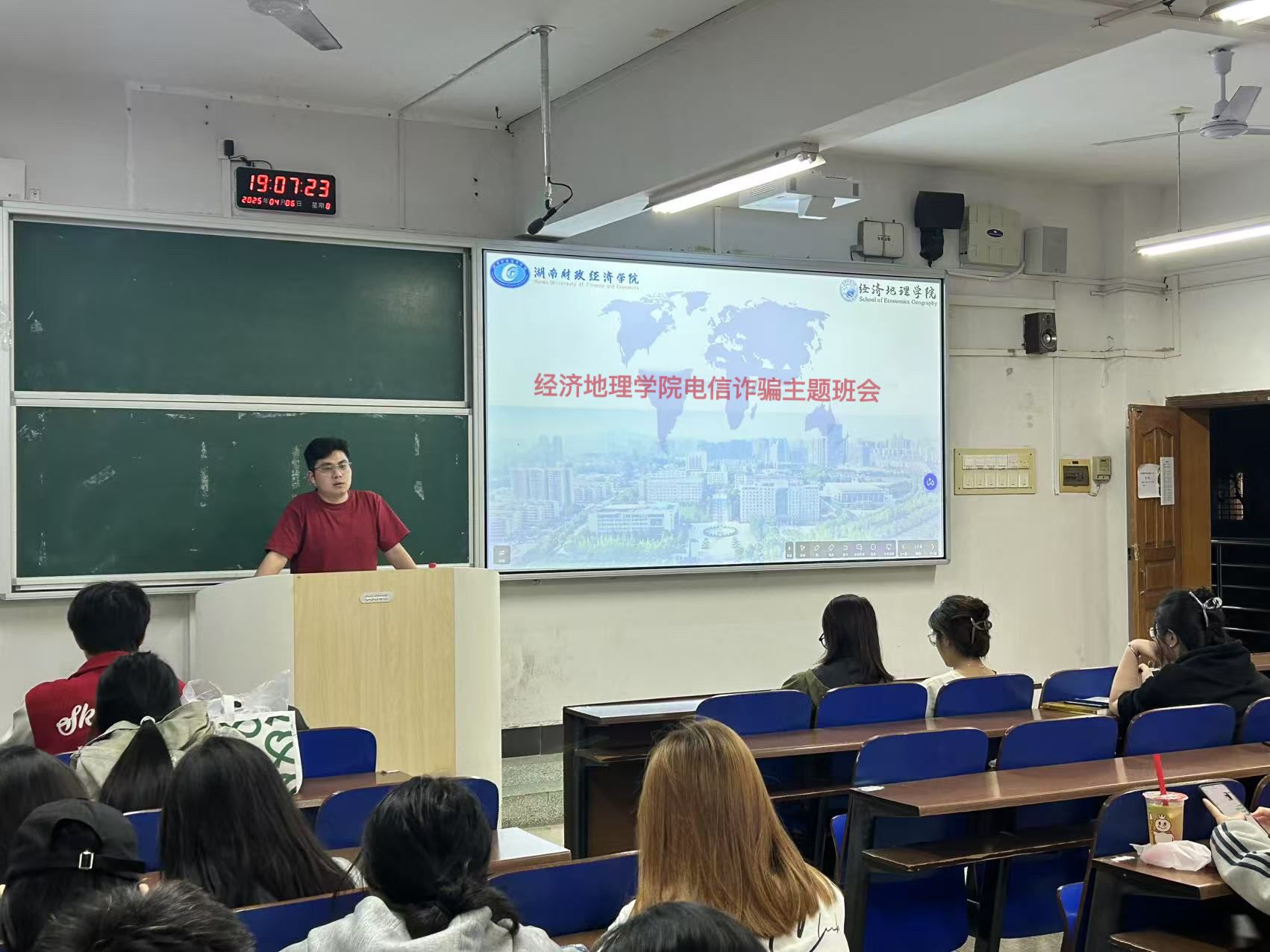 (本网讯)为响应学校关于加强校园安全教育的号召,提升学生防范电信诈骗的意识和能力,经济地理学院于近日组织开展了以“筑牢反诈防线,守护财产安全”为主题的专题班会,通过案例剖析、互动讨论等形式,多角度强化学生的安全意识。