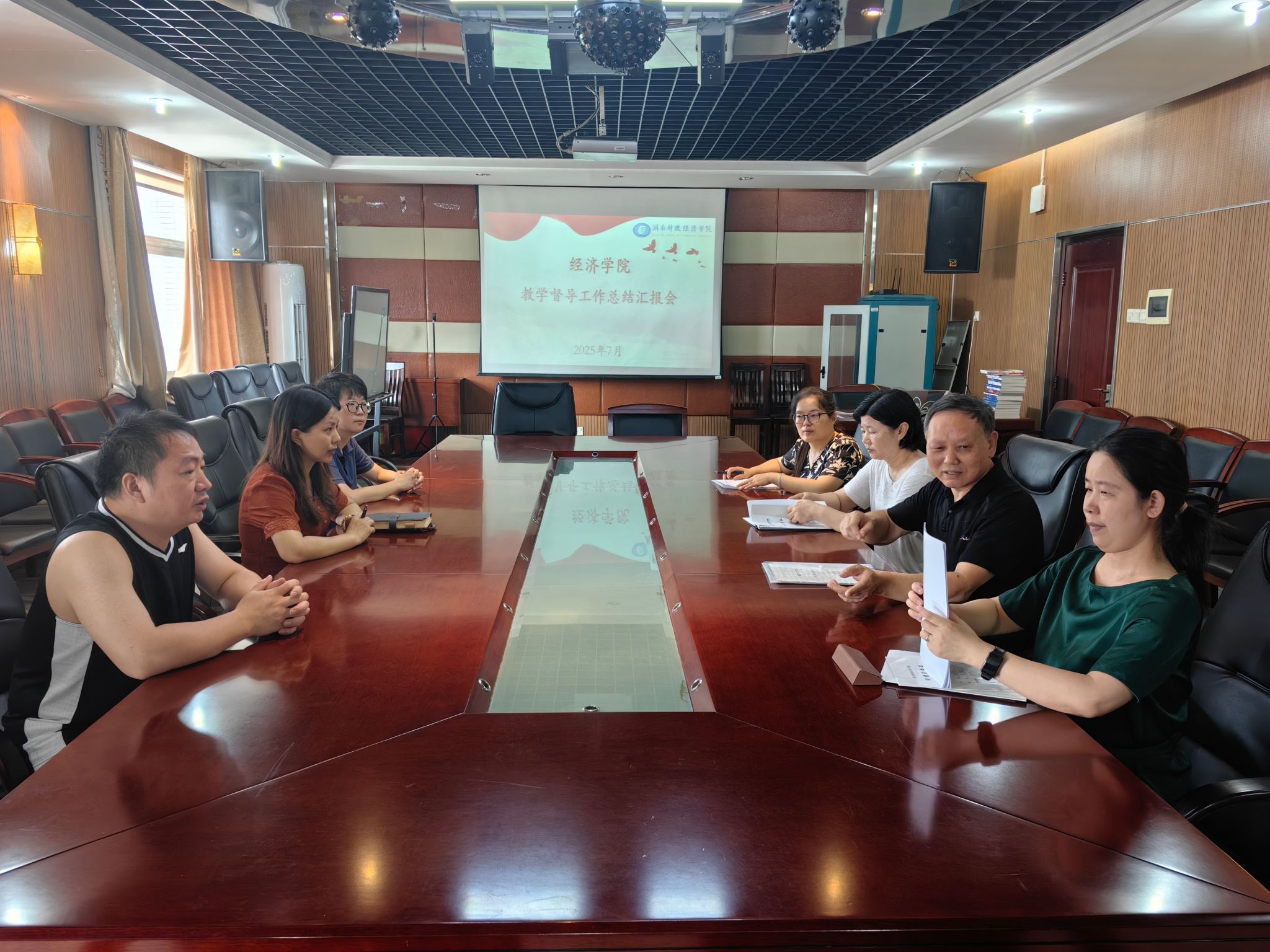(本网讯)2025年7月17日上午,经济学院教学督导工作总结汇报会在办公楼1014召开。学院领导、学院教学督导、各系主任与教务办干事参加了总结汇报会,围绕督导成效、症结与改进路径展开热烈研讨,以务实之举为学院教学质量精准“体检”,以前瞻之谋为人才培养强劲“续航”。会议由副院长陈雯主持。