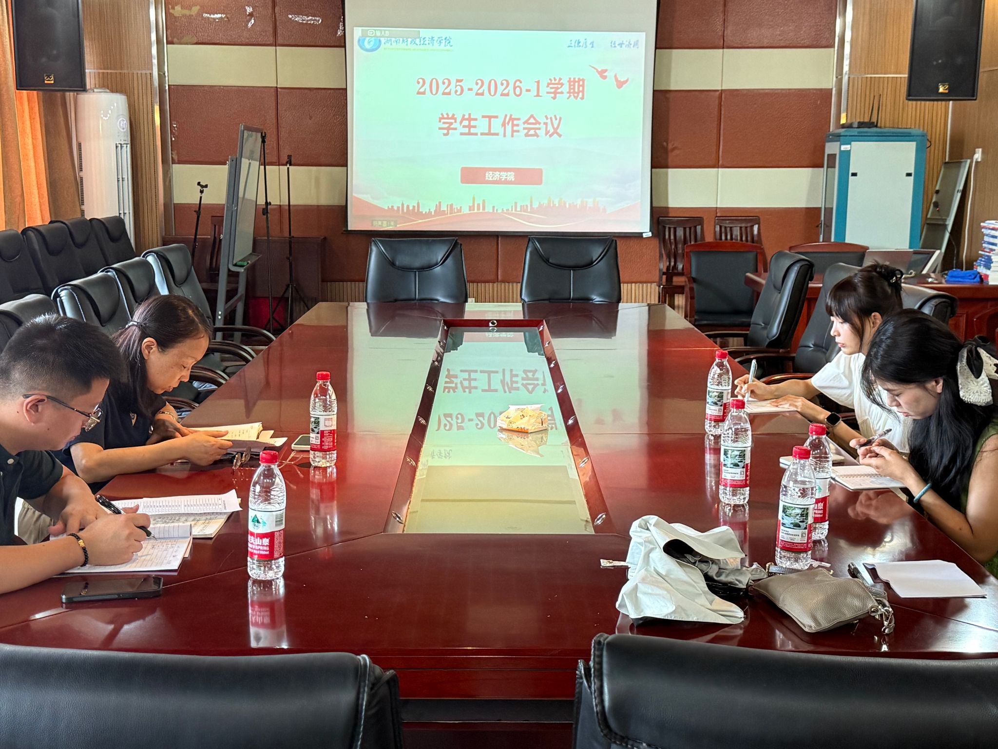 (本网讯)为扎实推进新学期学生管理工作,确保各项任务高效落实,8月27日上午,经济学院召开2025-2026-1学期第一次学生工作例会。会议由学院党委副书记刘英主持,学院全体辅导员参会。