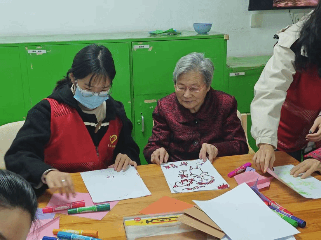志愿者们与养护中心老人一起做手工