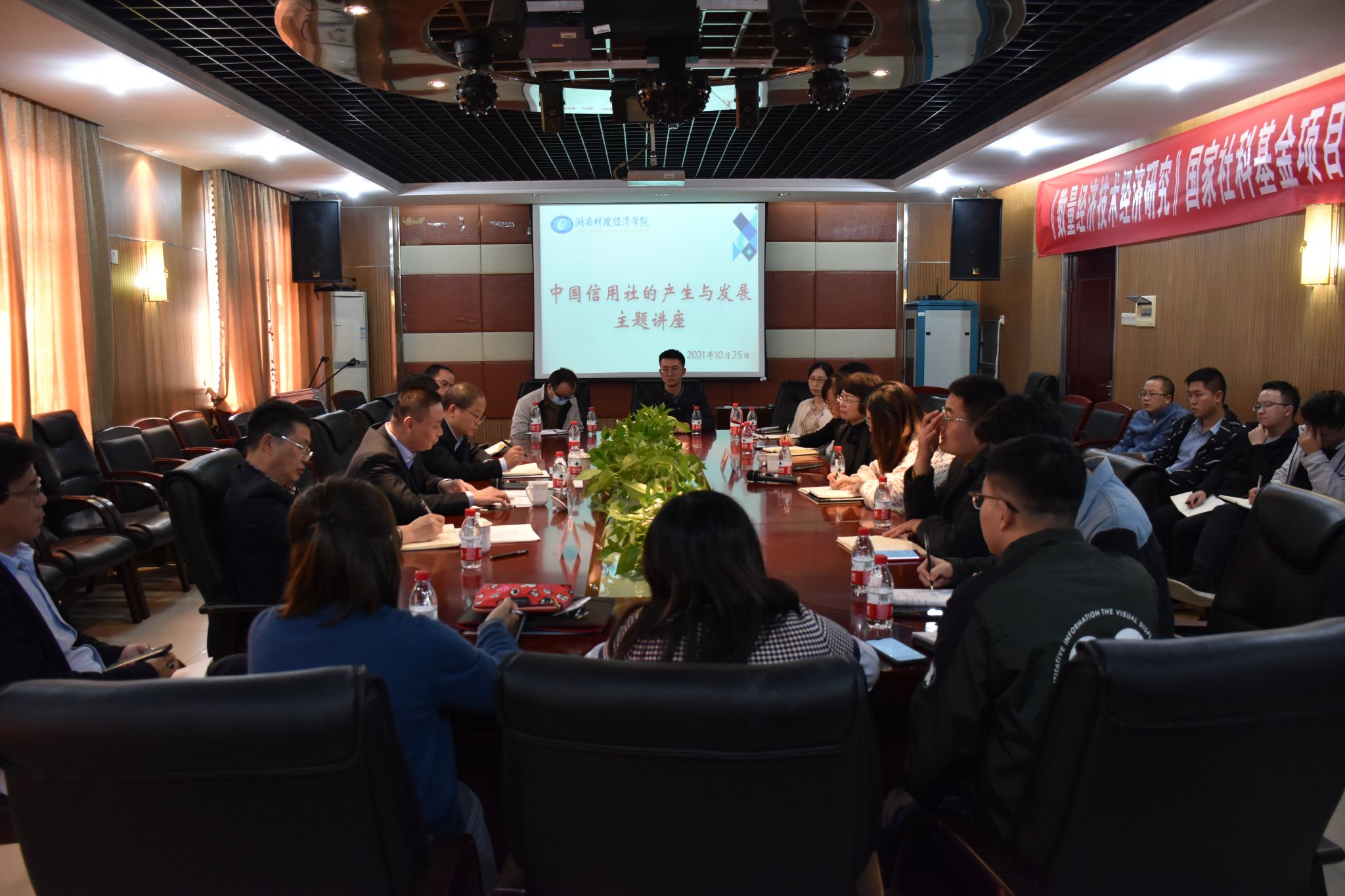 (本网讯)10月25日下午,经济学院在办公楼1014会议室举办“中国信用社的产生与发展”主题讲座。湖南省农村信用社联合社副主任陈治文和信贷管理部信贷部主任李首超应邀到会指导。校长刘长庚主持会议,湘潭大学商学院谭燕芝教授,世界杯官网科研处、数学与统计学院、经济学院主要负责人以及经济学院专任教师、青年博士、联合培养博士参会。