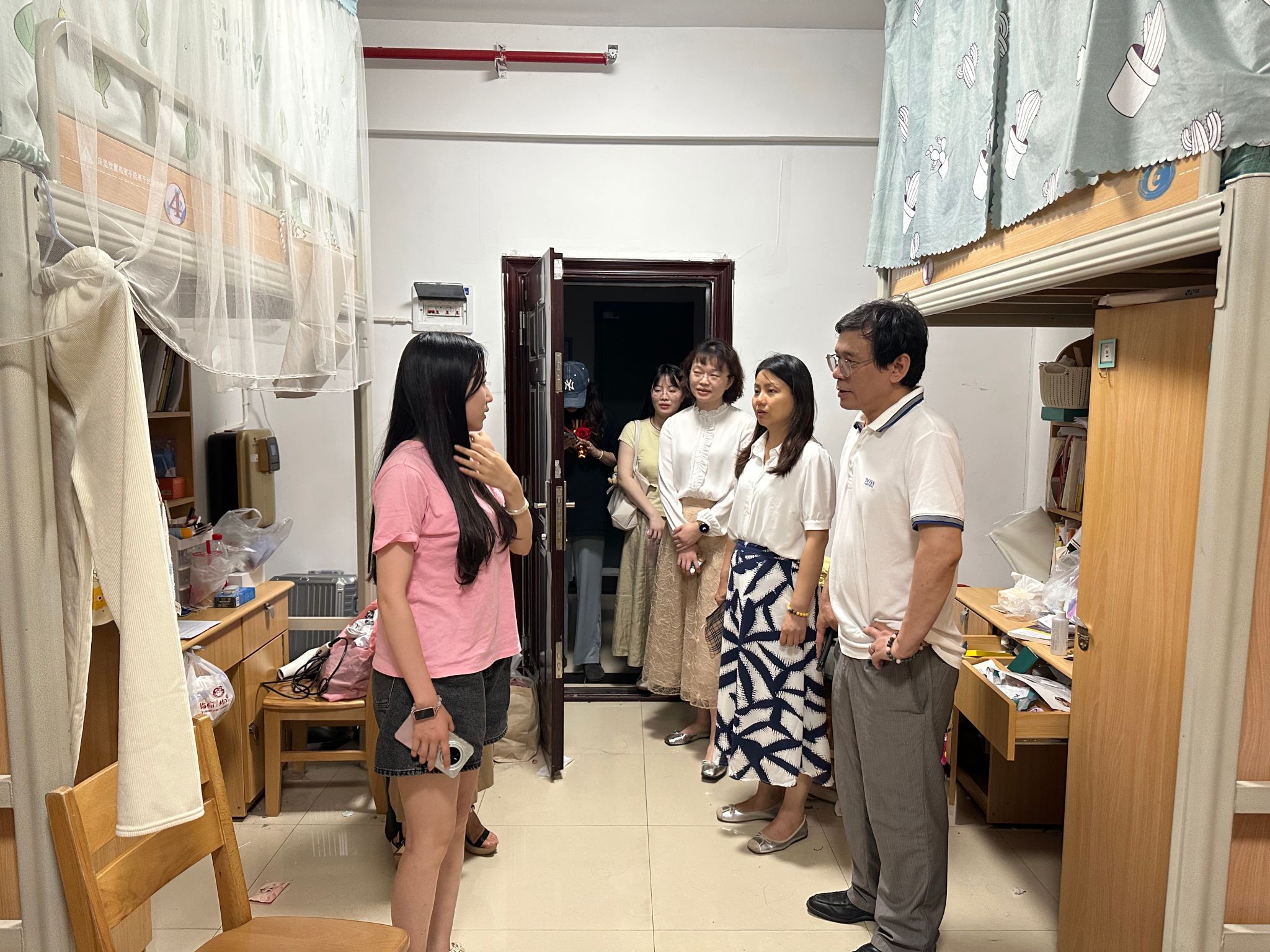 (本网讯)为深入了解毕业生离校动态,扎实做好毕业季学生管理服务工作,6月17日,经济学院全体党政班子成员及21级辅导员深入毕业生宿舍,开展毕业生宿舍暖心走访与安全排查活动。
