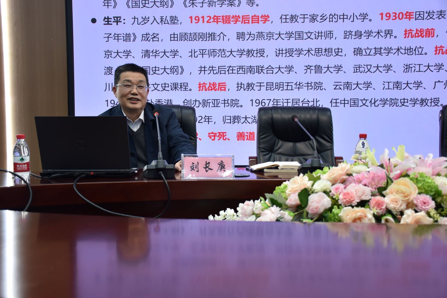 随后,刘长庚教授向在场师生系统介绍钱穆先生的生平,并总结阐述中国古代的各项制度。同时强调,同西方国家相比,我国制度发展的历史源远流长,切合我国社会发展实际,我们要更加坚定中国特色社会主义道路自信、理论自信、制度自信、文化自信。