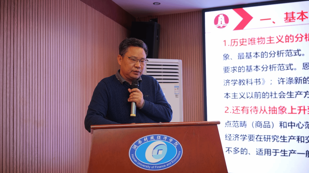 湖南工商大学向国成教授以“对马克思主义广义政治经济学分析范式的思考”为题,深入阐释了中国式经济现代化的内涵。他以劳动、劳动分工和分工演化为马克思主义广义政治经济学的起点范畴、中心范畴与主线,提出了马克思主义广义政治经济学中的四层分析框架。他指出在该分析框架下,基于马克思恩格斯的分工与市场、计划思想,结合社会发展阶段主要矛盾及经济发展战略的转换来阐释中国式经济现代化道路,可以实现理论逻辑与历史逻辑、实践逻辑的有机统一。