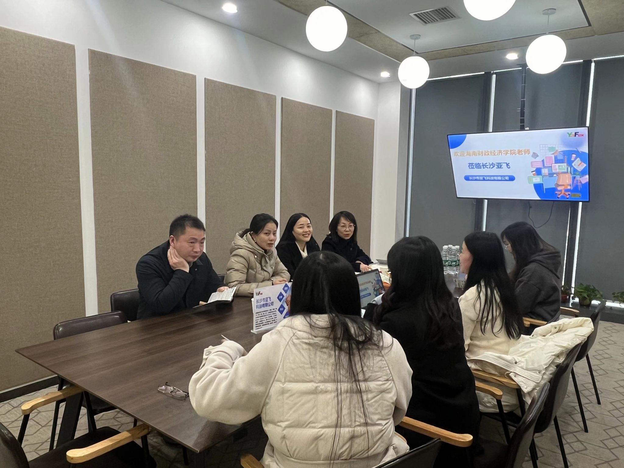 (本网讯)为进一步提升我院毕业生就业竞争能力,切实落实学校有关毕业生集中实习的要求,经济学院党委书记余华、党委副书记刘英、副院长陈雯及相关专任教师、工作人员一行赴长沙市亚飞科技有限公司商洽共建校外实习基地等事宜。