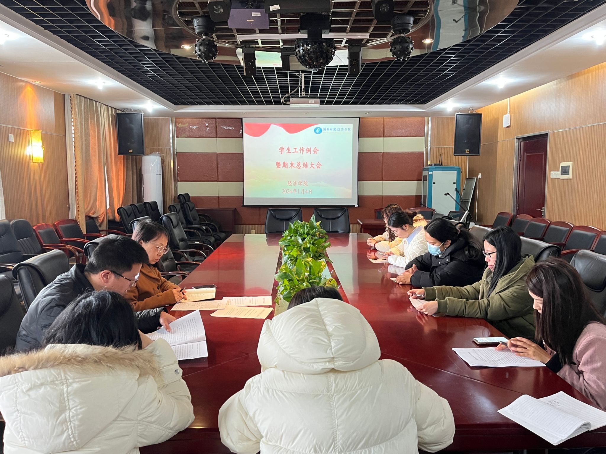 (本网讯)2024年1月4日下午,经济学院在办公楼1014召开了2023年度学生工作总结大会。会议由院党委副书记刘英主持,学院全体专、兼职辅导员参会。