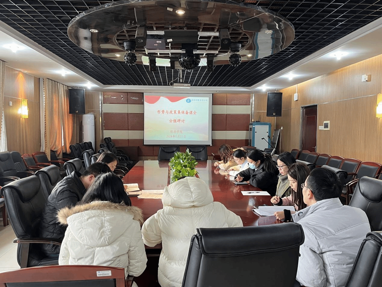 (本网讯)为深入学习贯彻习近平总书记关于高校思想政治工作的重要论述,全面提升《形势与政策》育人实效,2024年1月11日下午,经济学院学工办在办公楼1014举行2024年《形势与政策》集体备课会分组研讨,院党委副书记刘英出席并主持本次讨论,学院全体专兼职辅导员参加了会议。
