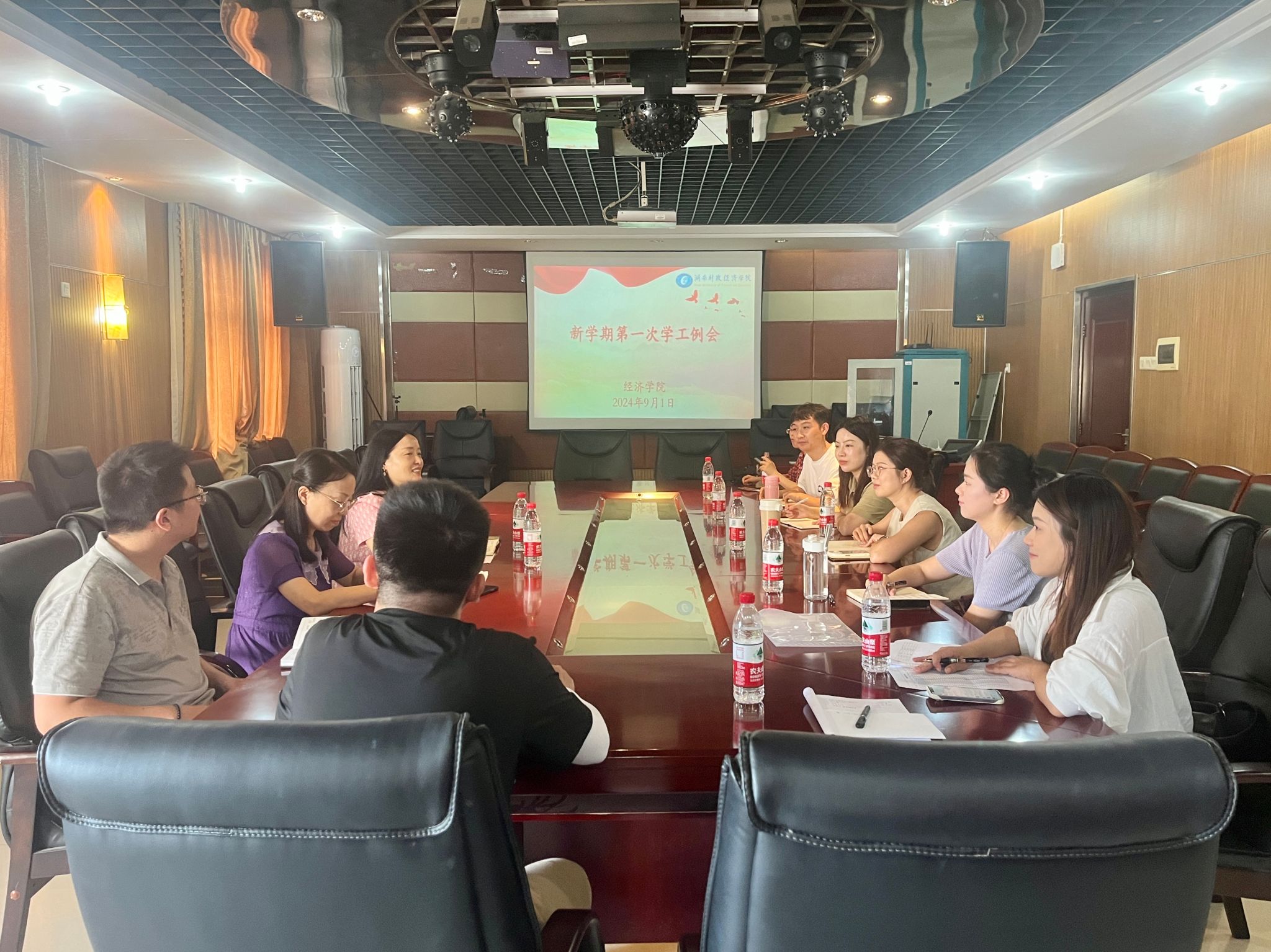 (本网讯)为切实做好新学期学生教育管理服务工作,持续提升工作质效,9月1日下午,经济学院于办公楼1014会议室召开了新学期第一次学工例会,学院党委书记余华、党委副书记刘英及全体专兼辅导员参加会议。会议由刘英主持。