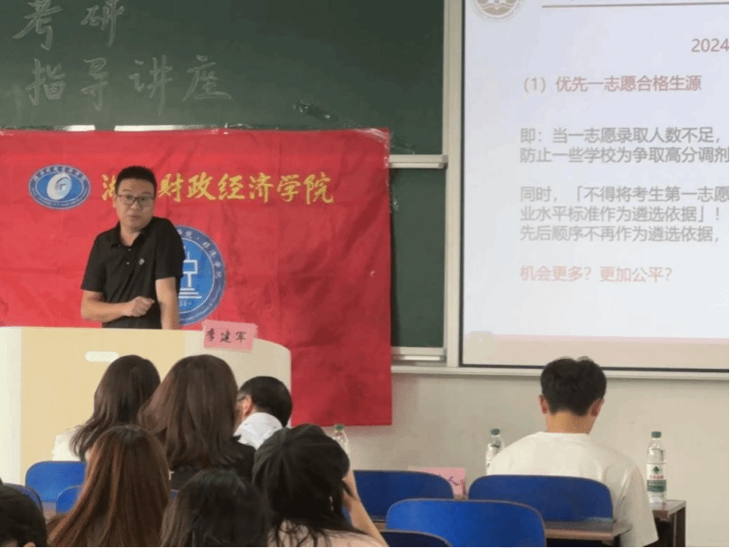 为帮助我院考研同学积极备考,明确考研方向,经济学院于10月10日在三教3202开展考研专题指导讲座。特邀湖南工商大学经济与贸易学院副院长李建军教授担任主讲。经济学院副院长陈雯、就业专干孙文郁及21、22级有考研意愿的学生参加此次讲座。