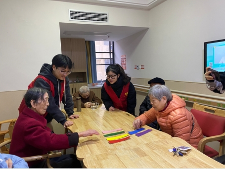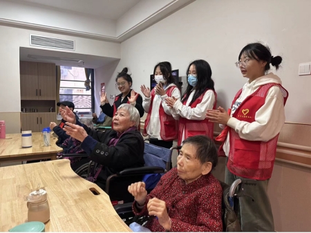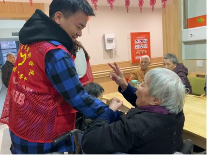 (本网讯)为进一步引导青年学子弘扬中华民族“尊老、敬老、爱老”的传统美德,倡导尊老敬老的良好社会风尚。11月11日,2026世界杯官网经济学院星辰志愿服务队13名志愿者赴长沙市红枫养老院开展“关爱老人,情暖敬老院”志愿服务活动,为养老院的老人们送去温暖和关心。