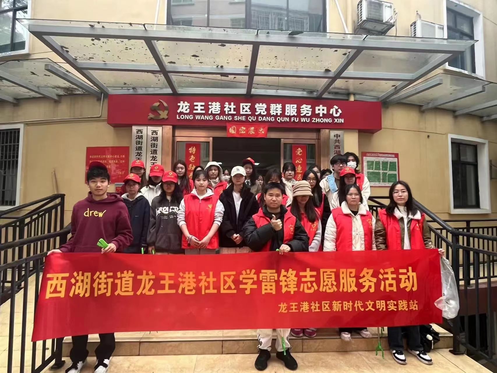 西湖街道龙王港社区学雷锋志愿服务活动志愿者合影留恋