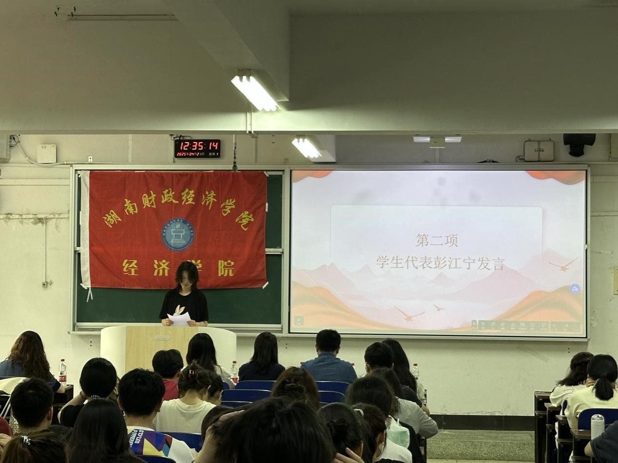 2023级国际经济与贸易一班彭江宁同学作为团学会骨干代表发言。她表示团课是我们青年团员学习理论知识、提升思想境界的重要平台,更是我们凝聚力量、传承使命的精神家园。每一次团课的学习,都是一次心灵的洗礼,一次思想的升华。她十分珍惜此次团校学习机会,饱含着对团校学习的热情和期待,严格要求自己,争做担当民族复兴重任的时代新人。