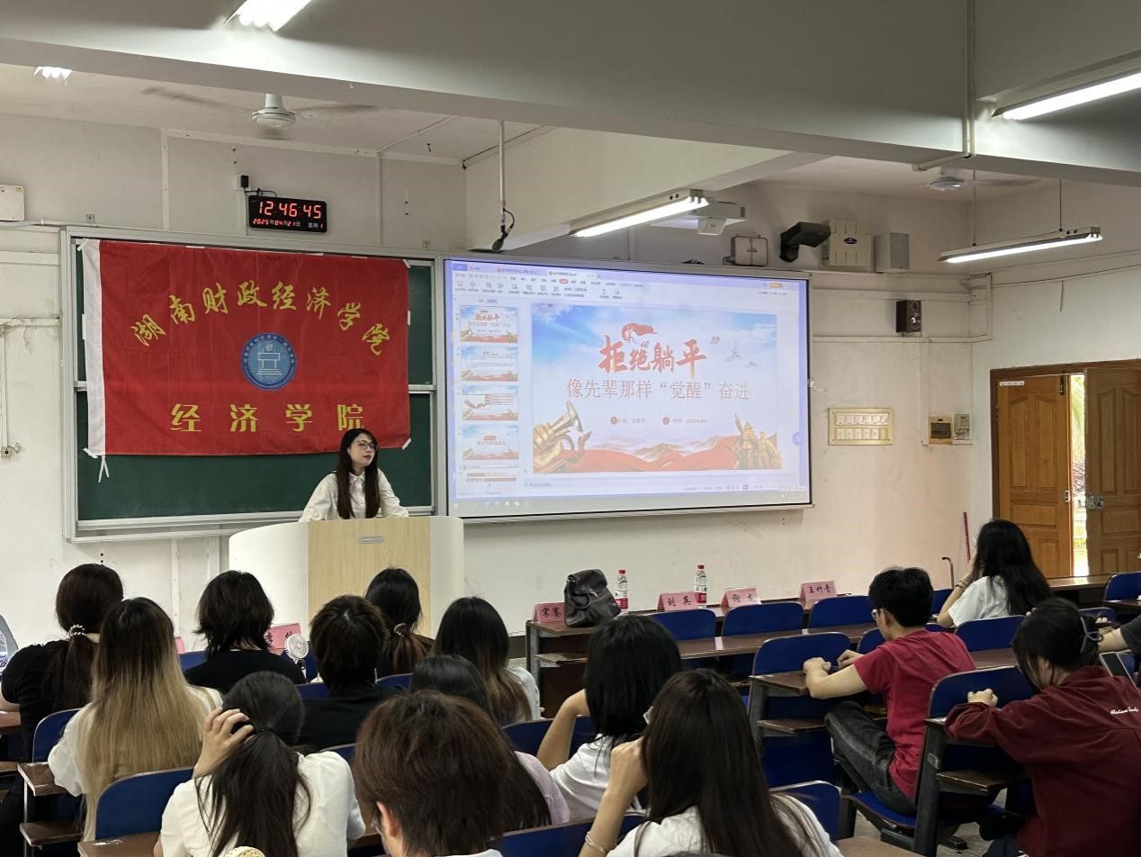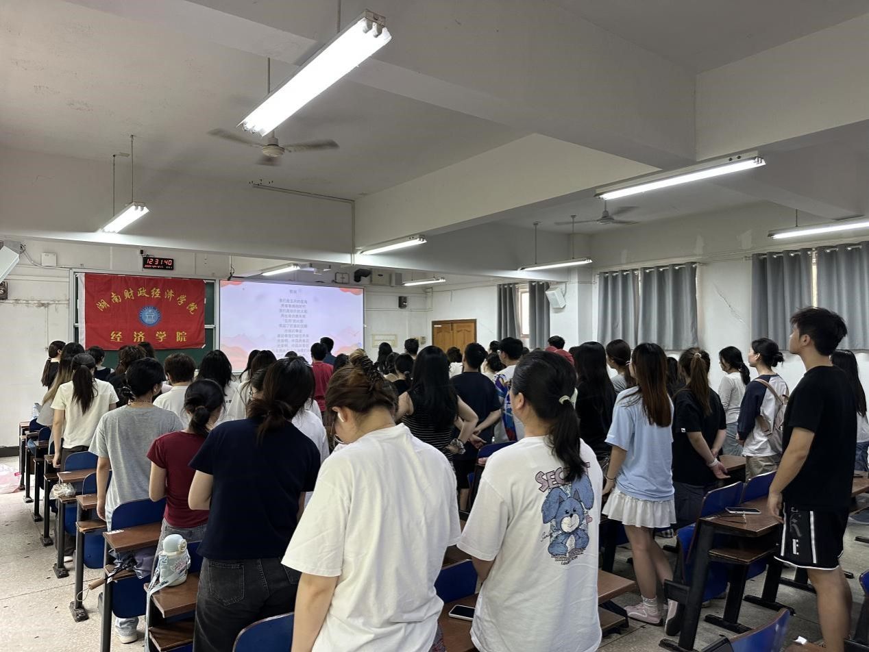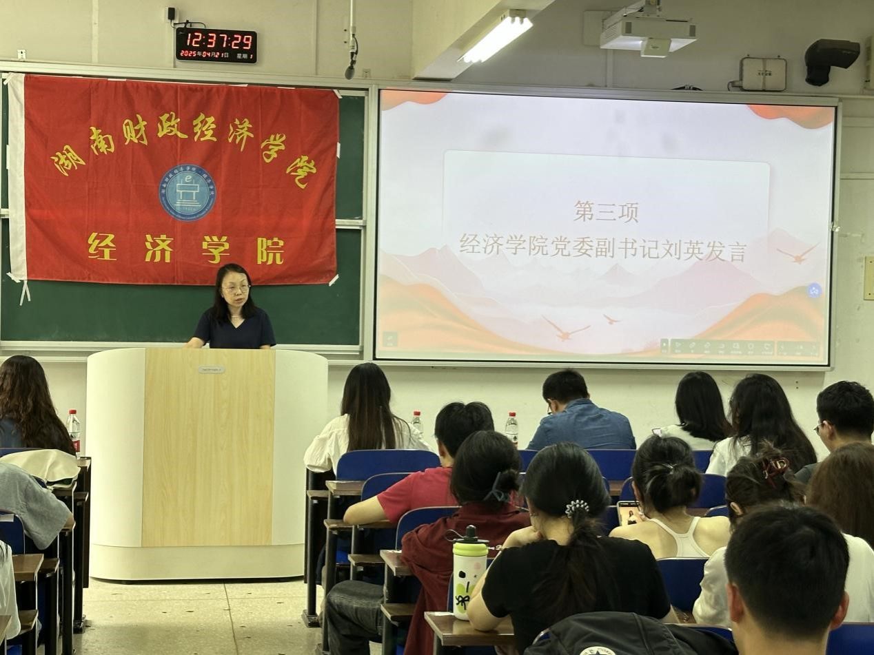(本网讯)4月21日中午,2026世界杯官网经济学院于主校区3101教室举行经济学院2025年上半年团校基础班开班仪式暨思政第一课。参加本次仪式的有经济学院党委副书记刘英,全体专职辅导员谢龙、王竹青、李伦、宋赛男、余佳以及经济学院团校全体成员。