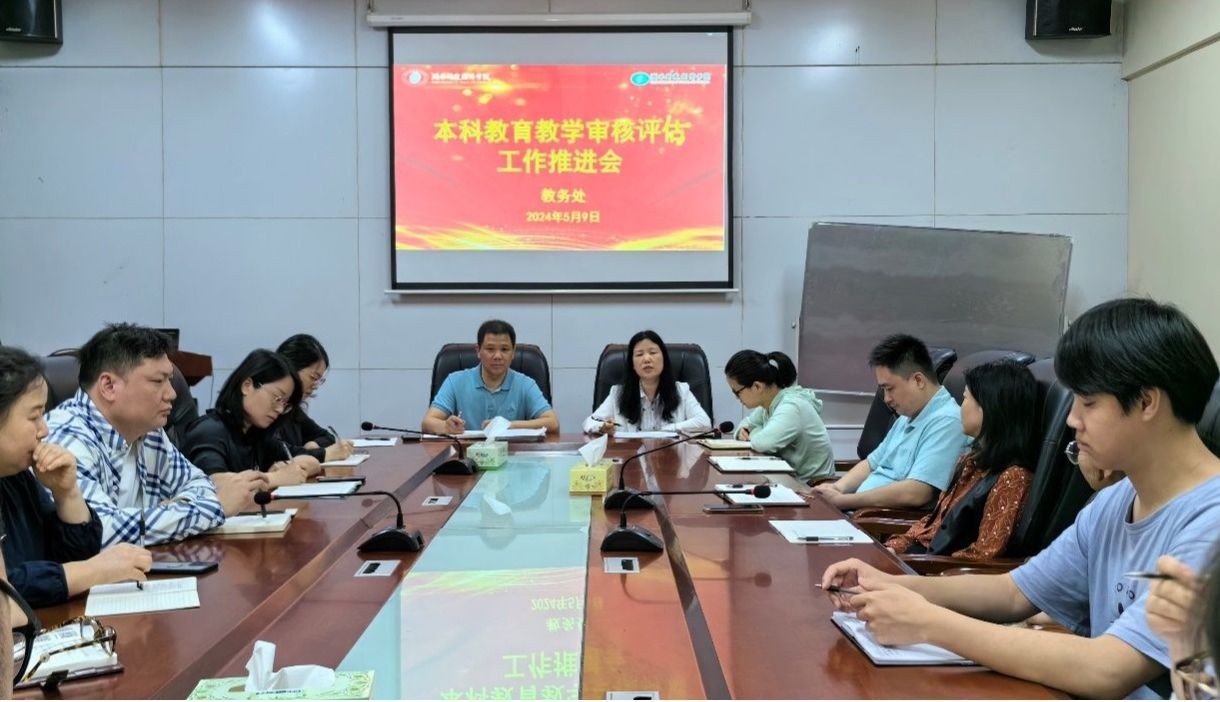 为进一步推进学校自评自建各项工作任务高质量落实, 5月9日上午,教务处在办公楼119会议室召开本科教育教学审核评估工作推进会。会议由教务处处长李茂平主持。教学质量监控与评估中心负责人邓永红、教务处副处长汪小英、教务处副处长张晓鹏,教务处各科室成员参加了会议。