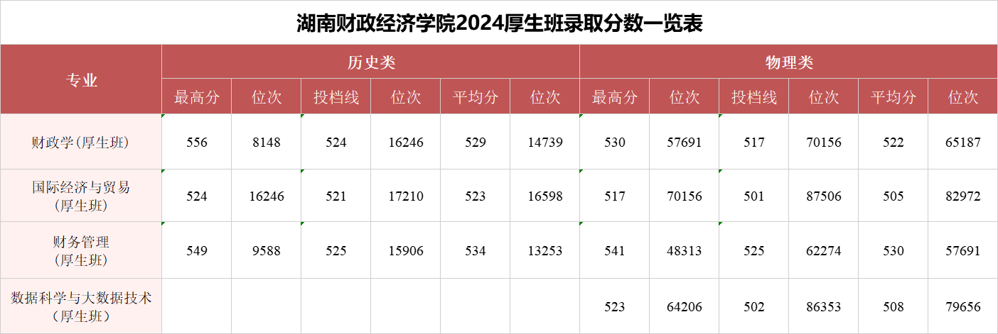 世界杯官网厚生实验班录取成绩攀升。财政学(厚生班)历史类最高分达556,位次8148,平均分达529,超出特殊类型控制线33分;财务管理(厚生班)物理类最高分达541,位次48313,平均分达530,超出特殊类型控制线49分。另外,新设专业也备受考生青睐,其中社会工作专业历史类最高分达505,投档线498,平均分达500,超出特殊类型控制线4分。