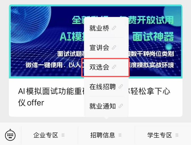 2.微信菜单中点开“招聘信息——双选会”