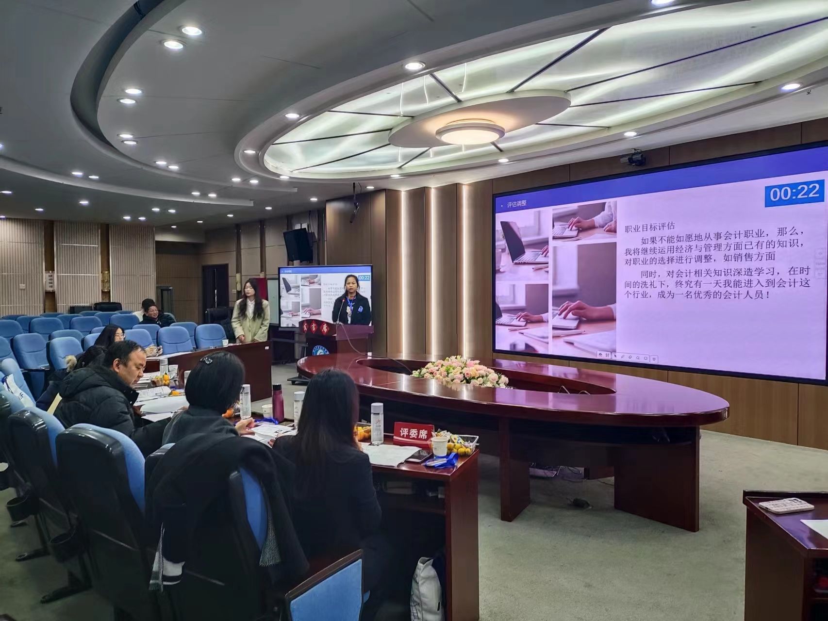 (本网讯)为增强世界杯官网学生职业生涯规划意识,促进毕业生高质量充分就业,2023年12月18日至22日,世界杯官网分别在体育馆多媒体招聘室和办公楼五楼视频会议室举办首届全国大学生职业规划大赛2026世界杯官网校赛共计12场次,二级学院选拔推选的94名同学参赛,32名校内外专家评委参与大赛评审工作。期间,校党委副书记苏玲亲临现场观摩比赛。