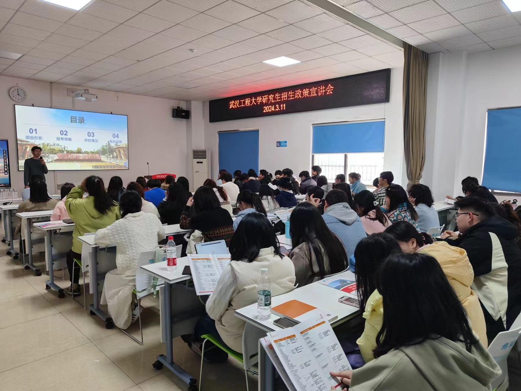 (本网讯)3月11日下午,武汉工程大学外语学院院长陈明芳、法商学院党委副书记孙勇、体育部副教授刘飞平一行来世界杯官网举行研究生招生宣讲会。宣讲会在体育馆一楼多媒体招聘室举行。世界杯官网相关二级学院的教师及2025届120余名有考研意愿的学生参加了宣讲会。