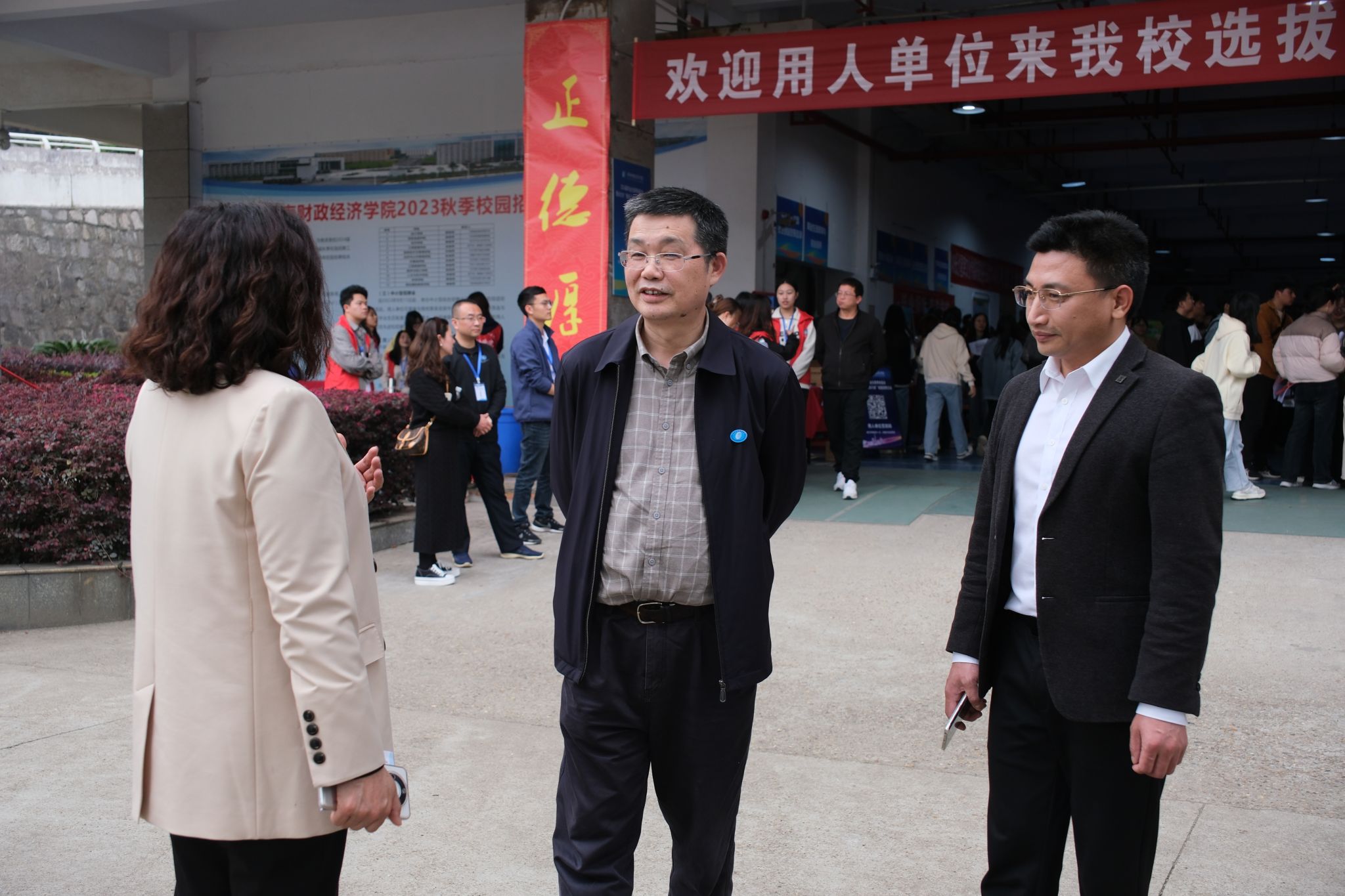 校长刘长庚(中)了解双选会开展情况 詹子露/摄