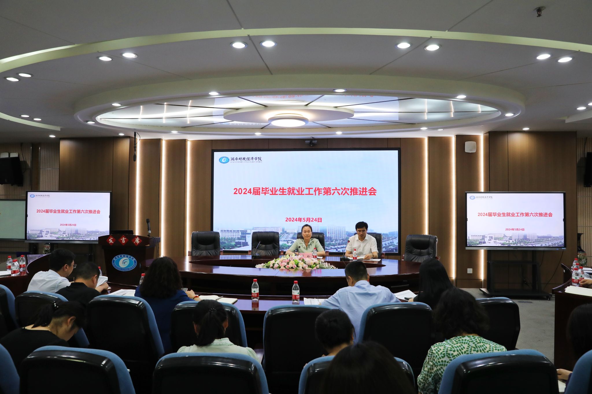 (本网讯)5月24日下午,学校在办公楼五楼视频会议室召开2024届毕业生就业工作第六次推进会暨2024年大学生创新大赛工作推进会,校党委副书记苏玲出席并讲话。学生工作部、教务处、科研处、校团委主要负责人,各二级学院党政主要负责人及分管创新大赛副院长(副书记),就业创业中心全体工作人员参会。
