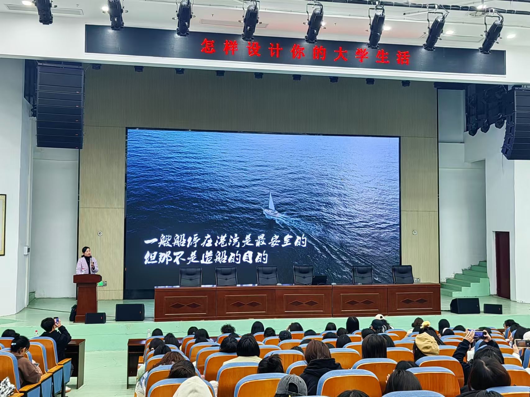 朱丽亚贴心地为同学们勾勒出大学进阶路线:大一,尽情放飞自我,深入认知自我,快速适应环境;大二,初步确定方向,精准锁定方向,积极参与校内实践;大三,明确发展方向,精心规划职业,踊跃投身校外实习;大四,从容淡定准备,不再纠结迷茫,自然而然迈向成功。朱丽亚风趣幽默的语言和生动的案例赢得了同学们的阵阵掌声。