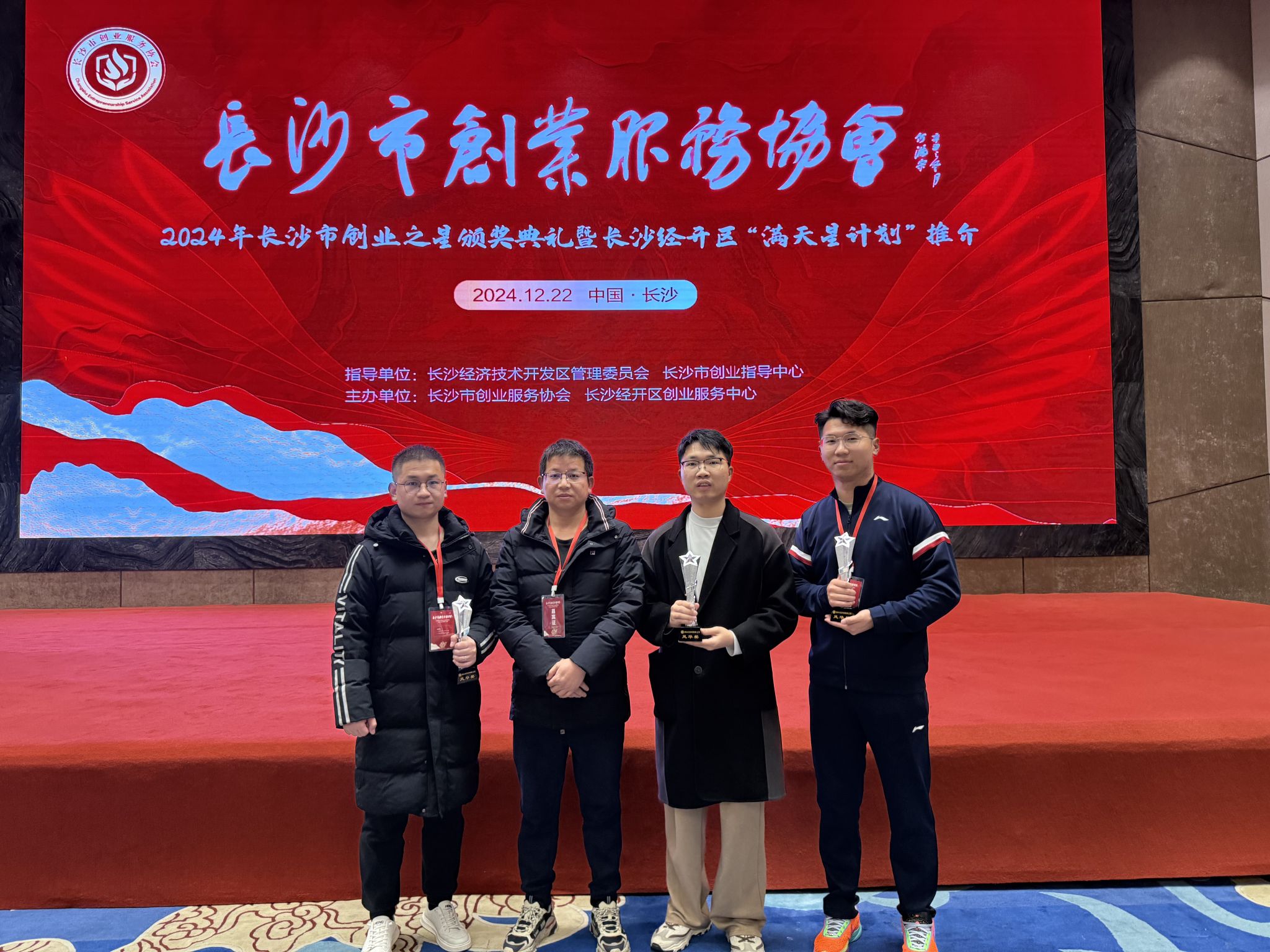 12月22日,由长沙经开区、长沙市创业指导中心指导,长沙市创业服务协会、长沙经开区创业服务中心联合主办的“2024长沙市创业之星颁奖典礼暨满天星政策推介活动”在长沙经开区举行。市区二级人社部门分管领导、20家高职院校双创负责人、20家省市级商协会代表出席,20家市级创业孵化基地负责人以及100余位企业家共同见证了此次盛会。世界杯官网就业创业中心创新创业教育部张雄主任及相关项目负责人参加。