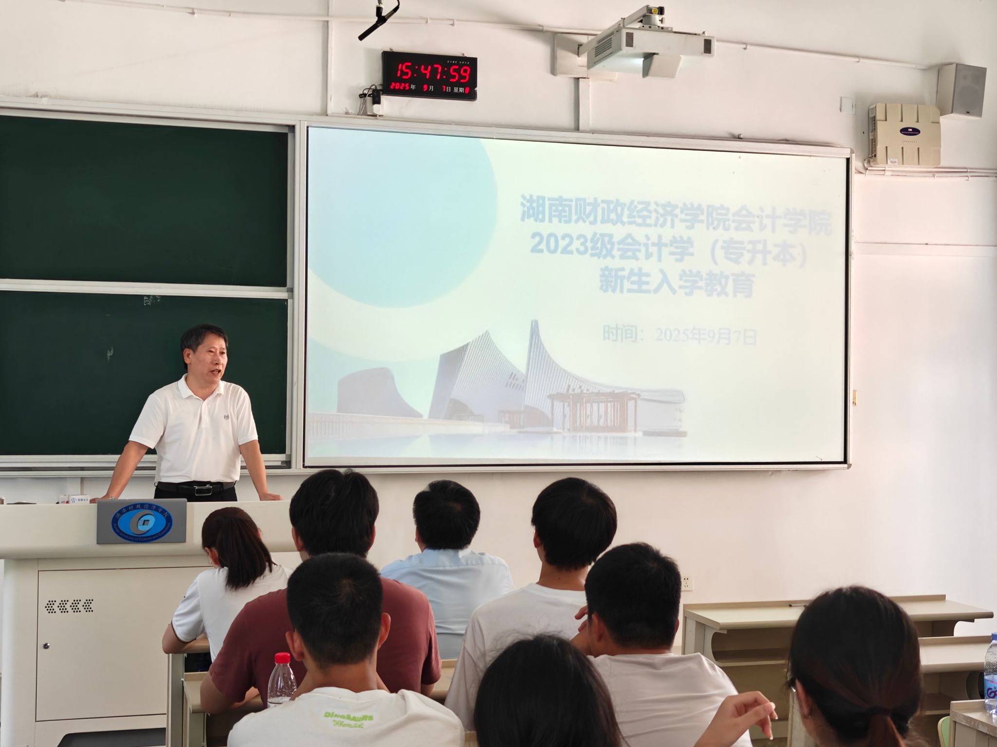 (本网讯)为帮助2025级专升本新生尽快适应本科阶段的学习与生活、明确学业目标,9月7日下午,会计学院于2114教室组织开展专升本新生入学教育活动。学院党委书记戴恩湘、党委副书记肖芳、副院长(挂职)曾峻、相关辅导员以及全体2025级专升本新生参加。