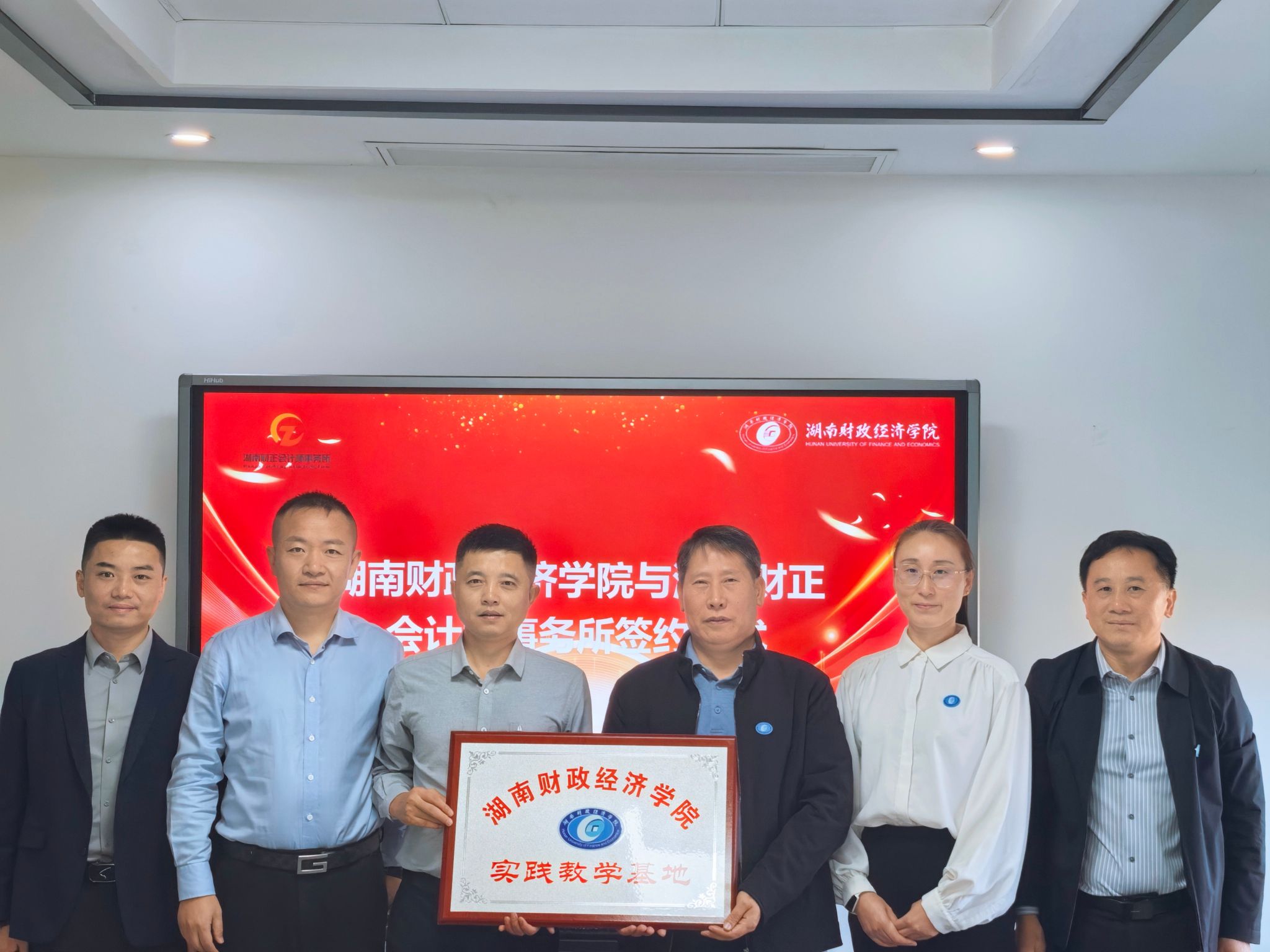 (本网讯)为进一步提升应用型人才培养质量,拓宽学生实践就业渠道,10月24日下午,会计学院与湖南四毅软件有限公司、湖南财正会计师事务所共建实践教学基地签约暨授牌仪式在该公司会议室隆重举行。会计学院党委书记戴恩湘、副书记肖芳、专任教师周忠民博士(副教授),湖南四毅软件有限公司总经理尹卓君、湖南财正会计师事务所所长罗沙、监事隆礼章出席仪式,共同见证我院在产教融合领域的又一重要时刻。