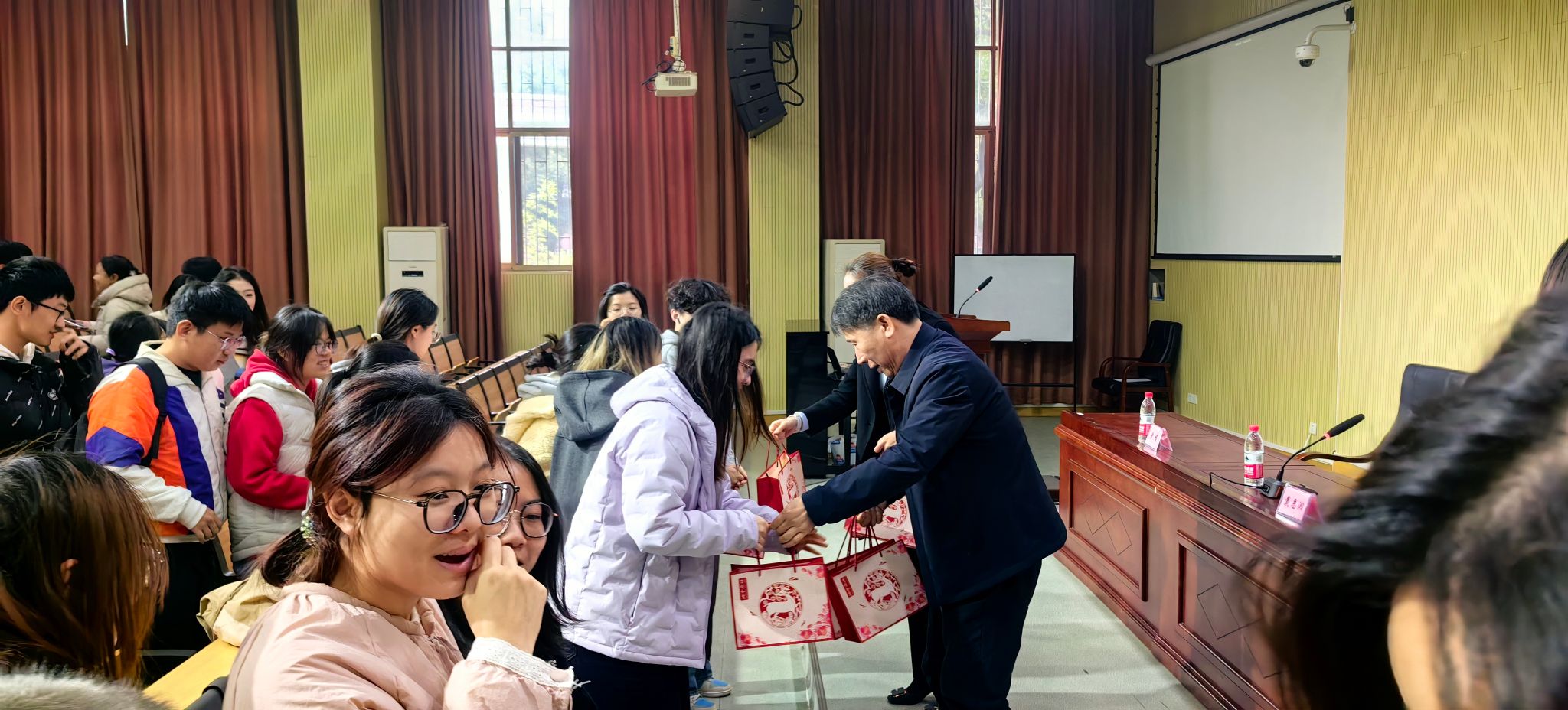 活动尾声,学院领导与辅导员共同为学子们送上满载关怀的“暖心礼包”,表达师长的诚挚嘱托与学院的温暖支持。