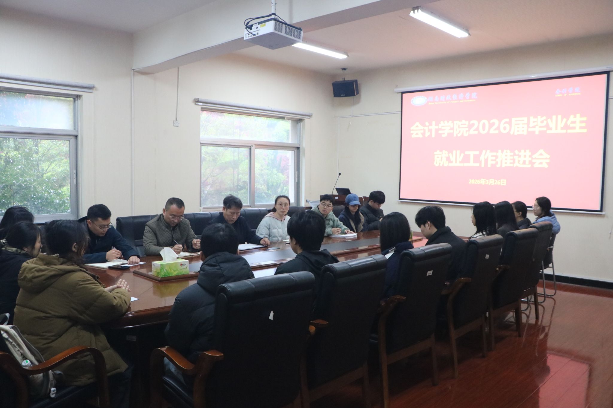 (本网讯)3月24日至26日,我院连续召开三场2026届毕业生就业工作系列推进会。会计学院党委书记戴恩湘、副书记肖芳全程出席,辅导员管超男、詹子露、胡旭、张繁及毕业生代表依次参会,会议由就业专干蔡益华主持。