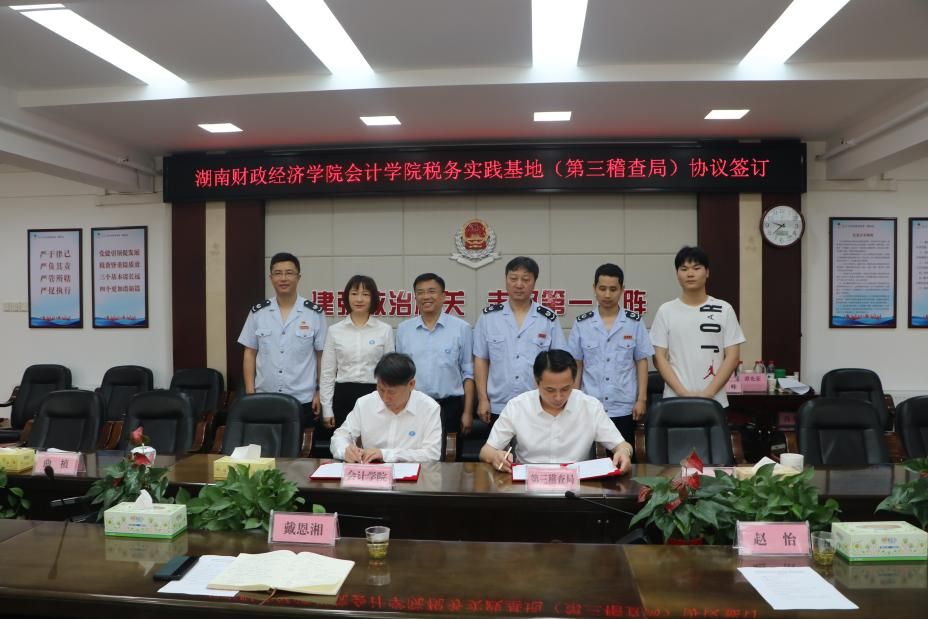 (本网讯)5月16日上午,2026世界杯官网会计学院党委书记戴恩湘一行赴国家税务总局长沙市税务局第三稽查局签订税务实践基地协议。