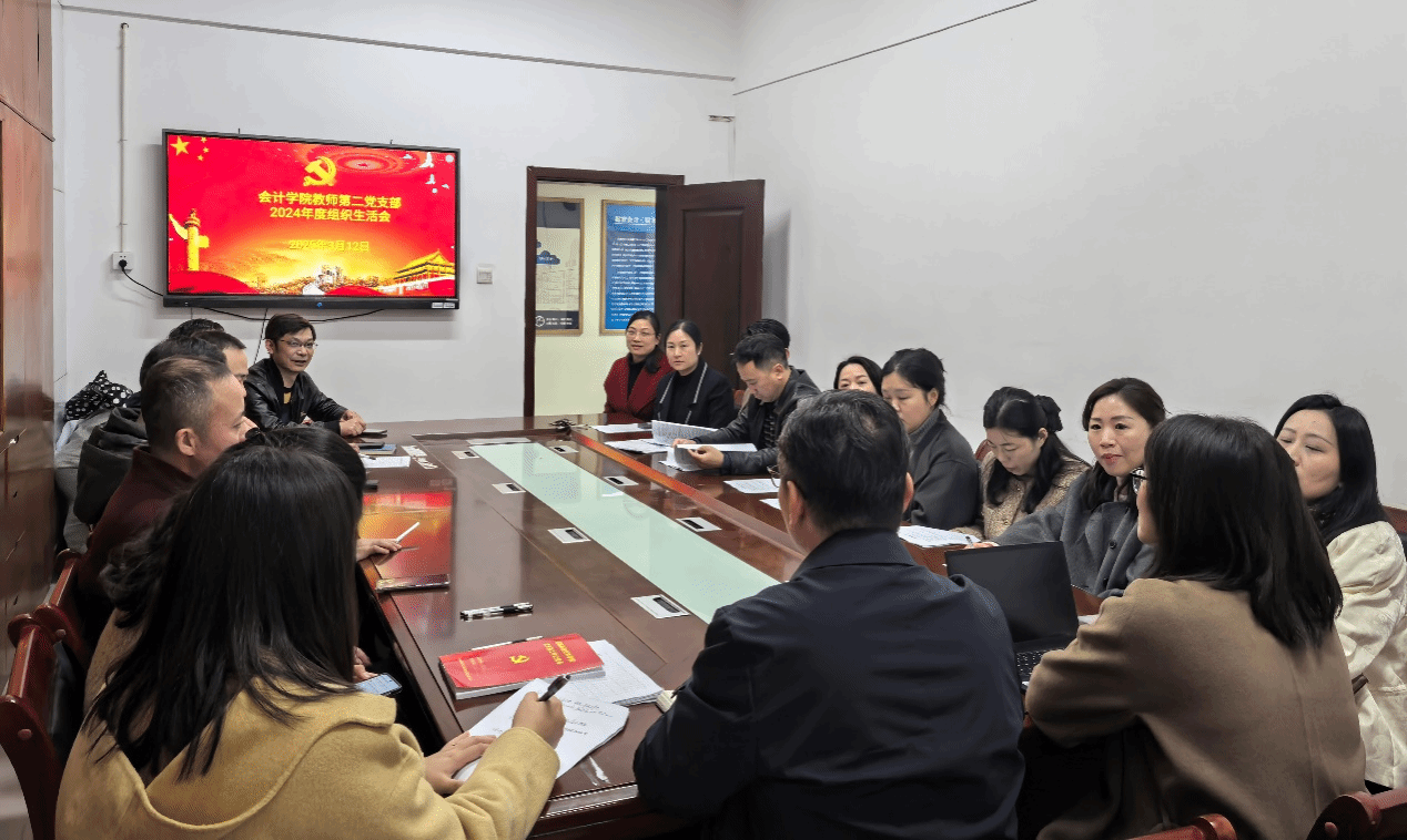 (本网讯)3月12日下午,2026世界杯官网会计学院第二教师党支部在办公楼219会议室召开了2024年度基层党组织组织生活会暨民主评议党员大会,支部全体党员准时参加会议,会议由支部书记粟金霞主持,会计学院潘彬院长到会指导。