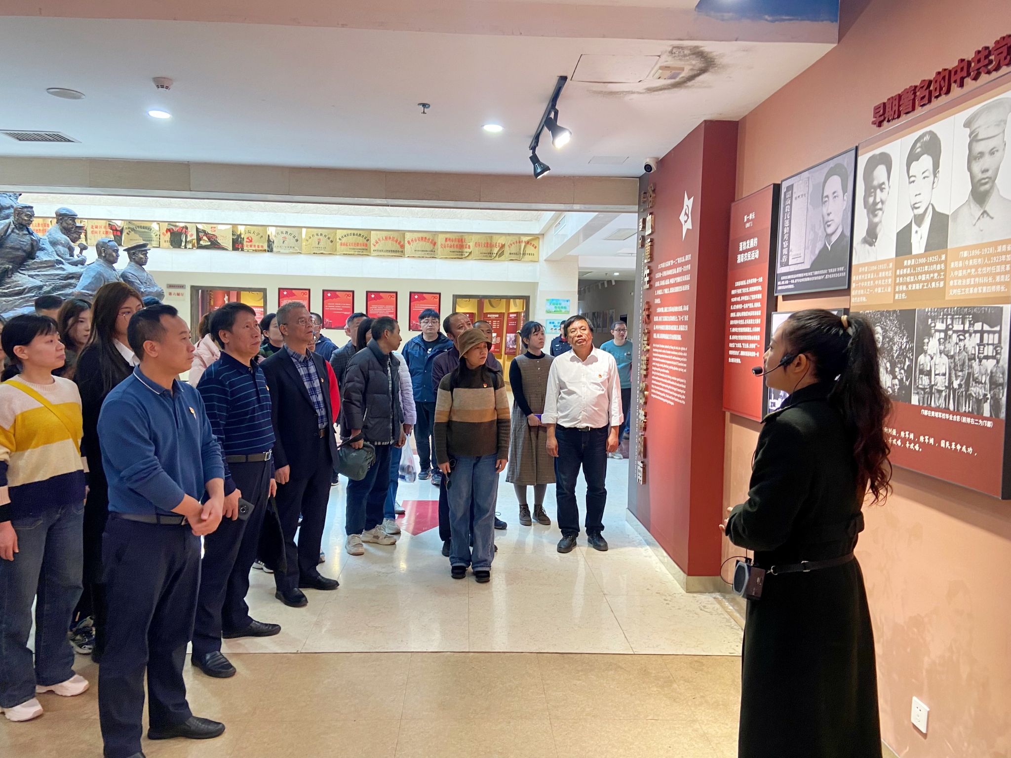 上午11点,全体党员怀着无比崇敬的心情来到湘南起义纪念馆。伴随着讲解员的深情讲述,党员们通过观看文献资料、实物陈列、浮雕蜡像等展品,探寻红色印记,追溯光辉历史,从湘南起义发起背景、斗争经过和对中国革命的重要贡献,全方位感受了湘南起义波澜壮阔的历史过程,深刻体悟革命先辈心怀理想、筚路蓝缕、浴血奋斗、不怕牺牲的革命精神。