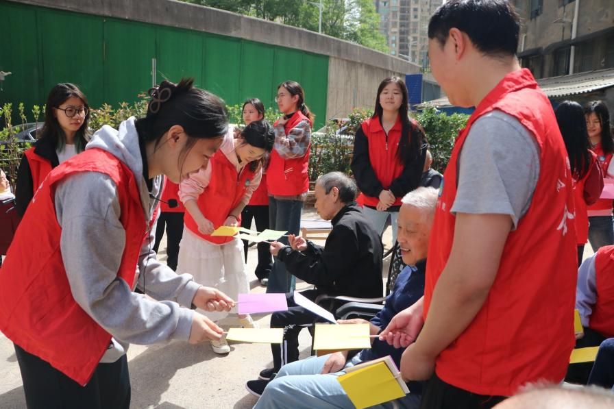 活动尾声,志愿者向长者赠送精心制作的手工艺扇子,扇面上写着“笑口常开”“身体健康”等祝福语,饱含院青协与团支部对长者们的美好期许。