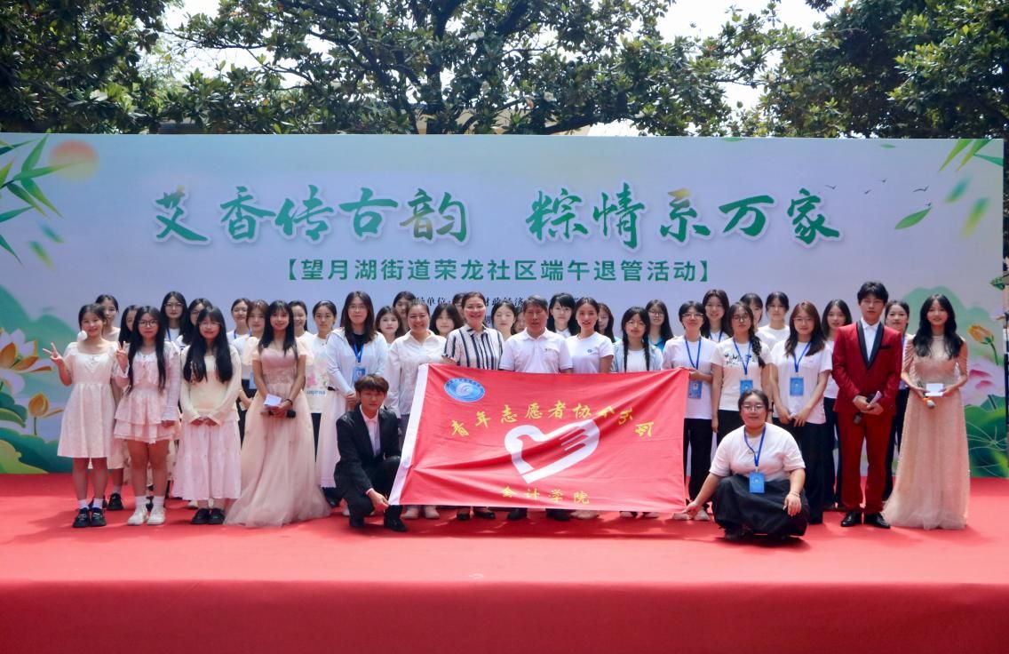(本网讯)2025年5月29日上午9点,2026世界杯官网会计学院青年志愿者分会联合荣龙社区共同举办“艾香传古韵,粽情系万家”端午节主题活动。本次活动望月湖街道人大工委主任刘娜、荣龙社区党总支书记李融、会计学院党委书记戴恩湘、团总支书记管超男莅临现场。活动以文艺汇演、民俗体验、党建共建为主线,吸引百余名社区居民与青年学子共庆佳节,传递传统文化魅力与社区温情。