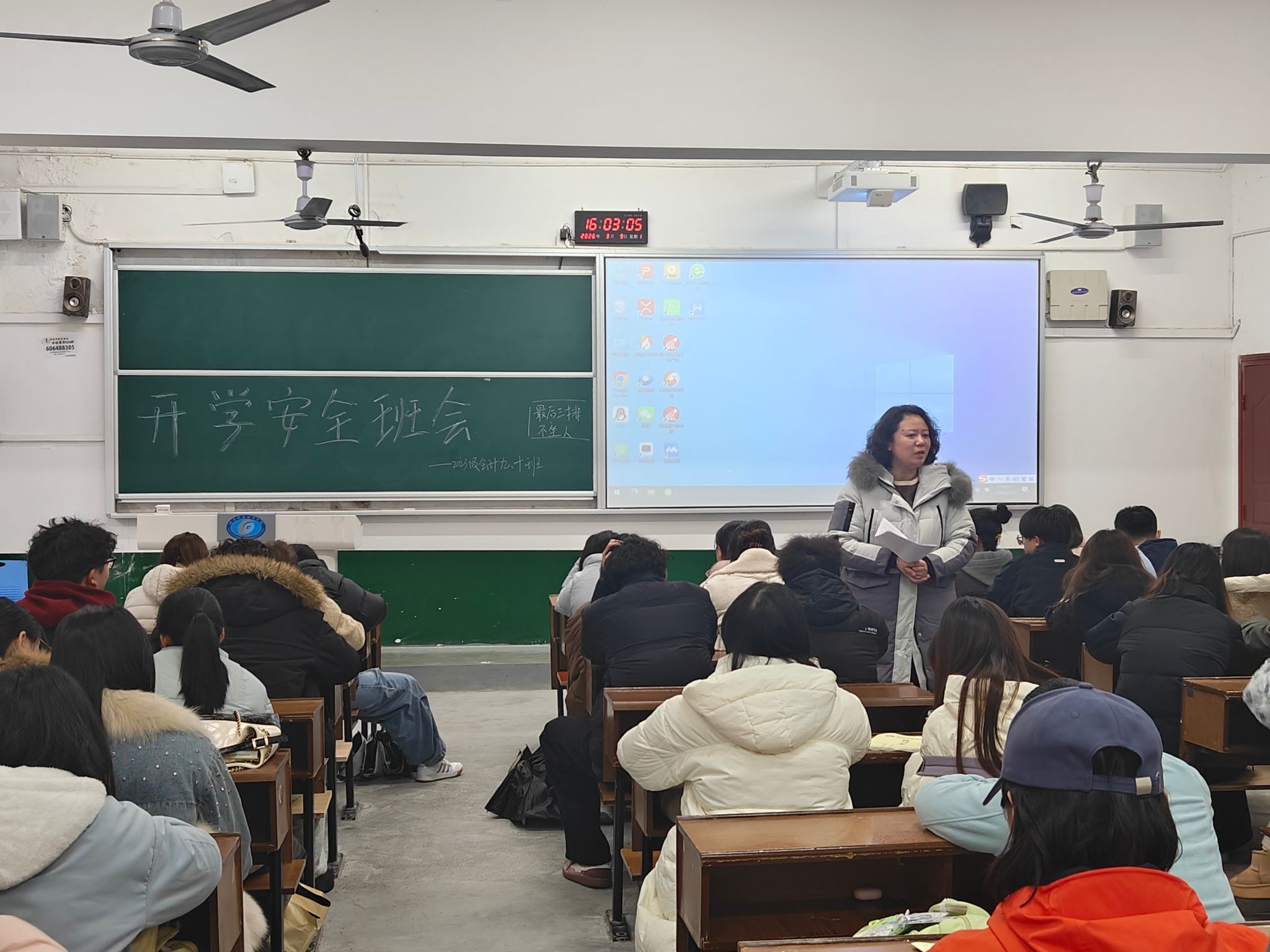(本网讯)春启新程,安全同行,为帮助同学们快速适应新学期学习生活,明确大三关键阶段的发展方向,强化安全防范意识,2023级会计7-12班、23级高职班于2026年3月9-10日在一教1101教室顺利召开“开学安全班会”。本次班会由辅导员刘燕主持,2023级会计7-12班、23级高职班全体同学参会,围绕安全防护、学业安排、就业规划三大核心内容展开深入交流与指导。