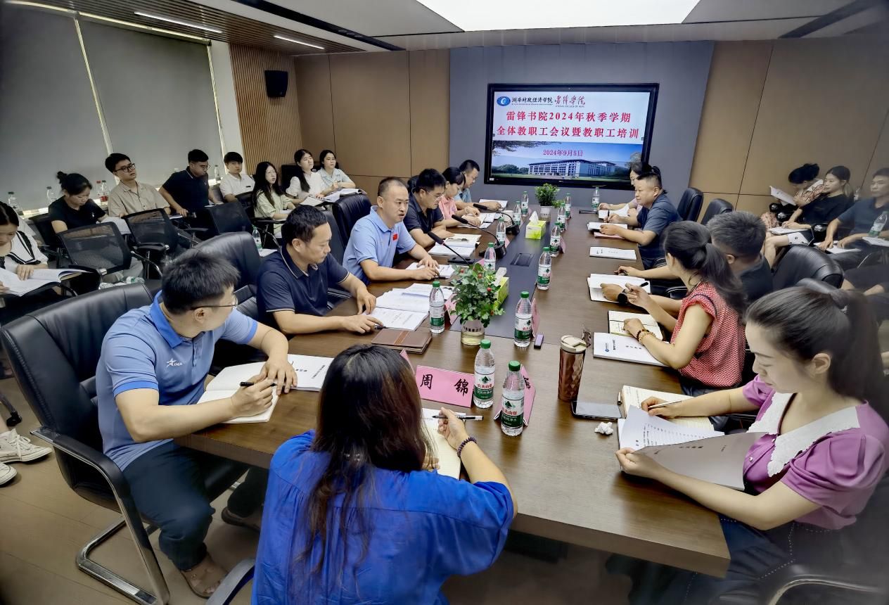 凝心聚力赴新程,同心筑梦谱新篇。9月5日,雷锋书院在行政楼205会议室成功召开了全体教职工会议暨教职工培训,安排部署新学期各项工作。此次会议由雷锋书院常务副院长杨健主持。(会议现场)杨健首先向全体教职工介绍了新调任到书院的同事,并对他们的到来表示热烈的欢迎。接着详细阐述了书院的整体情况以及三年来雷锋书院的工作总结,回顾了书院在教育教学、学生管理、校园文化建设等方面取得的显著成果,强调了书院制改革的重要性和紧迫性。...