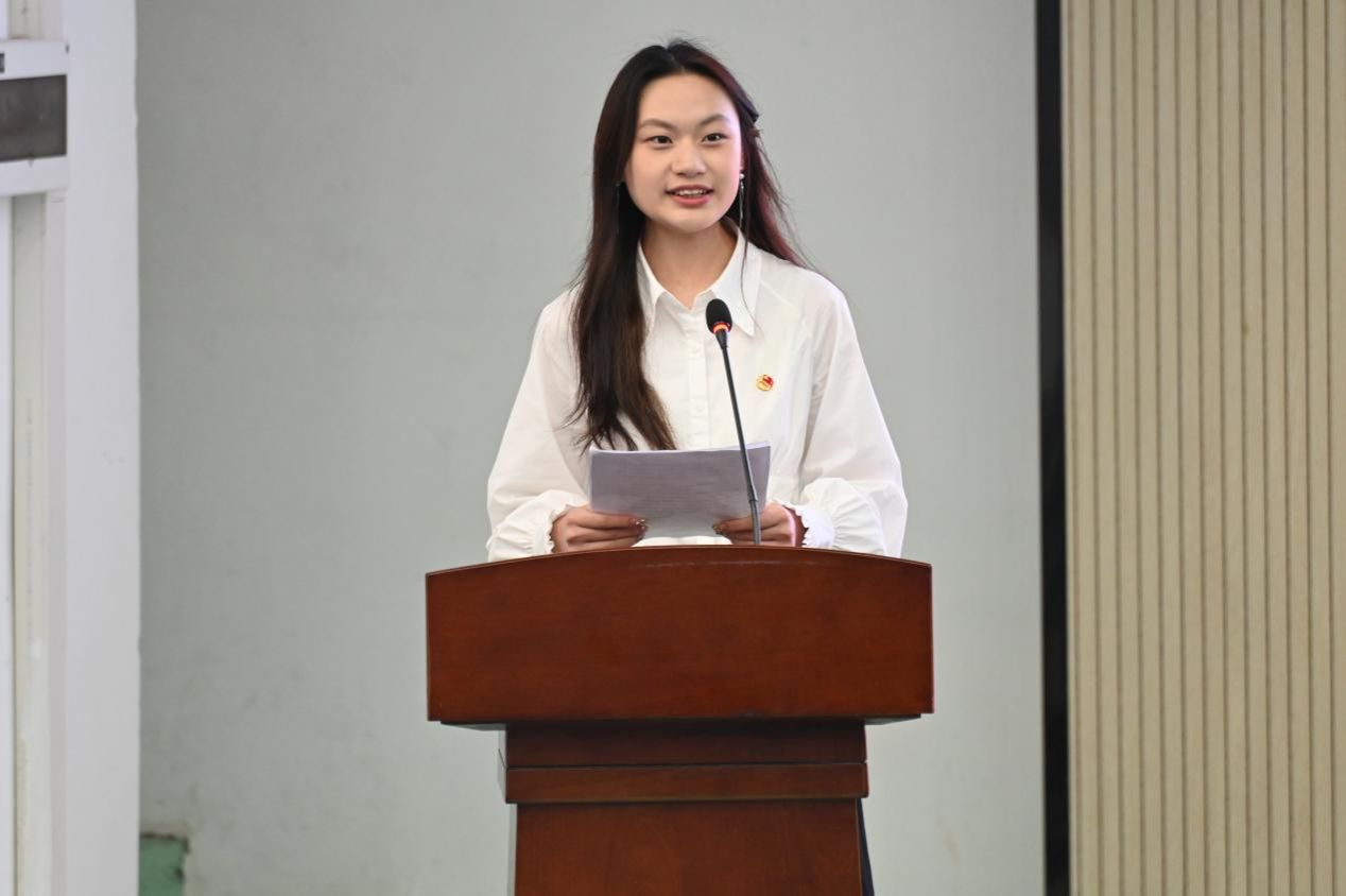 来自25级国际经济与贸易(数字贸易)班的王蔓绮作为学员代表发言。团校是淬炼思想、磨砺才干、践行使命的大熔炉,全体学员将以此次培训为契机,做信念坚定的追梦人、德才兼备的实干家、勇于担当的排头兵,将所学知识转化为服务同学、服务校园、服务社会的实际能力,用实际行动践行入团誓词,不负时代、不负韶华。