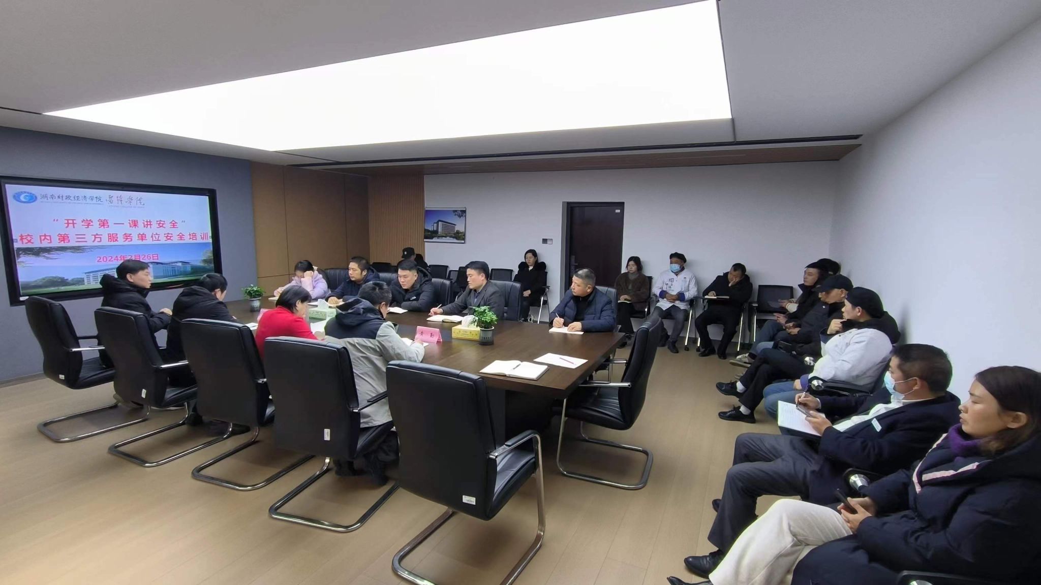 2月26日下午,我院在行政楼205会议室召开“开学第一课讲安全”校内第三方服务单位安全培训会议,雷锋学院直属党支部书记刘东艳、雷锋学院副院长陈波出席会议,总务办主任黄勤主持会议。