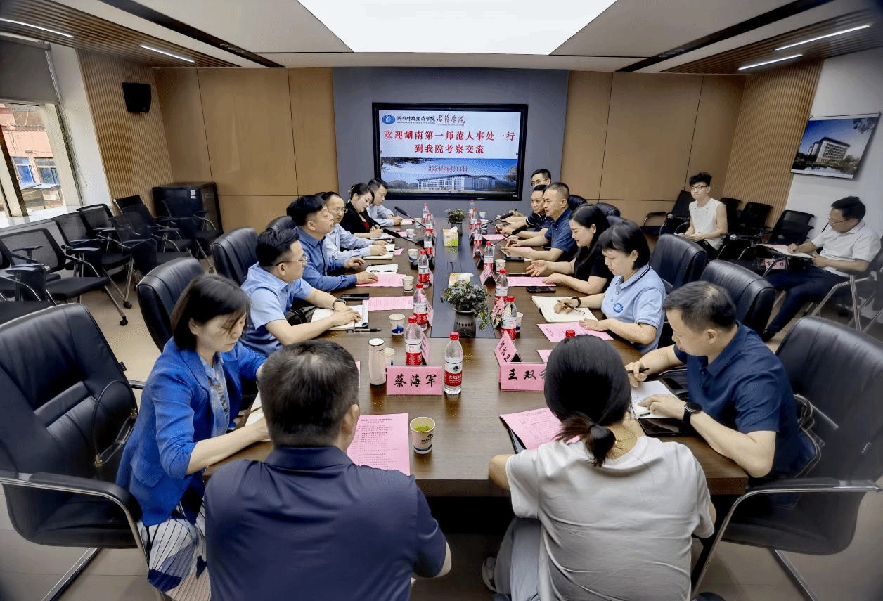 5月14日上午,湖南第一师范学院人事处处长黄小喜一行来我院考察交流并举行交流座谈会。湖南第一师范学院学生工作部部长张福国、城南书院党委书记鲁云生、城南书院院长张瑞智、人事处副处长巢卫平、教务处副处长周枫林、城南书院副院长蔡海军、人事处人事科与职工交流培训中心科长王双利、城南书院综合办主任聂凯,世界杯官网人事处处长李小娟、雷锋学院常务副院长杨健、雷锋学院直属党支部书记刘东艳、副院长陈波以及人事处、雷锋学院相关工作人员参加了座谈会,座谈会由李小娟主持。