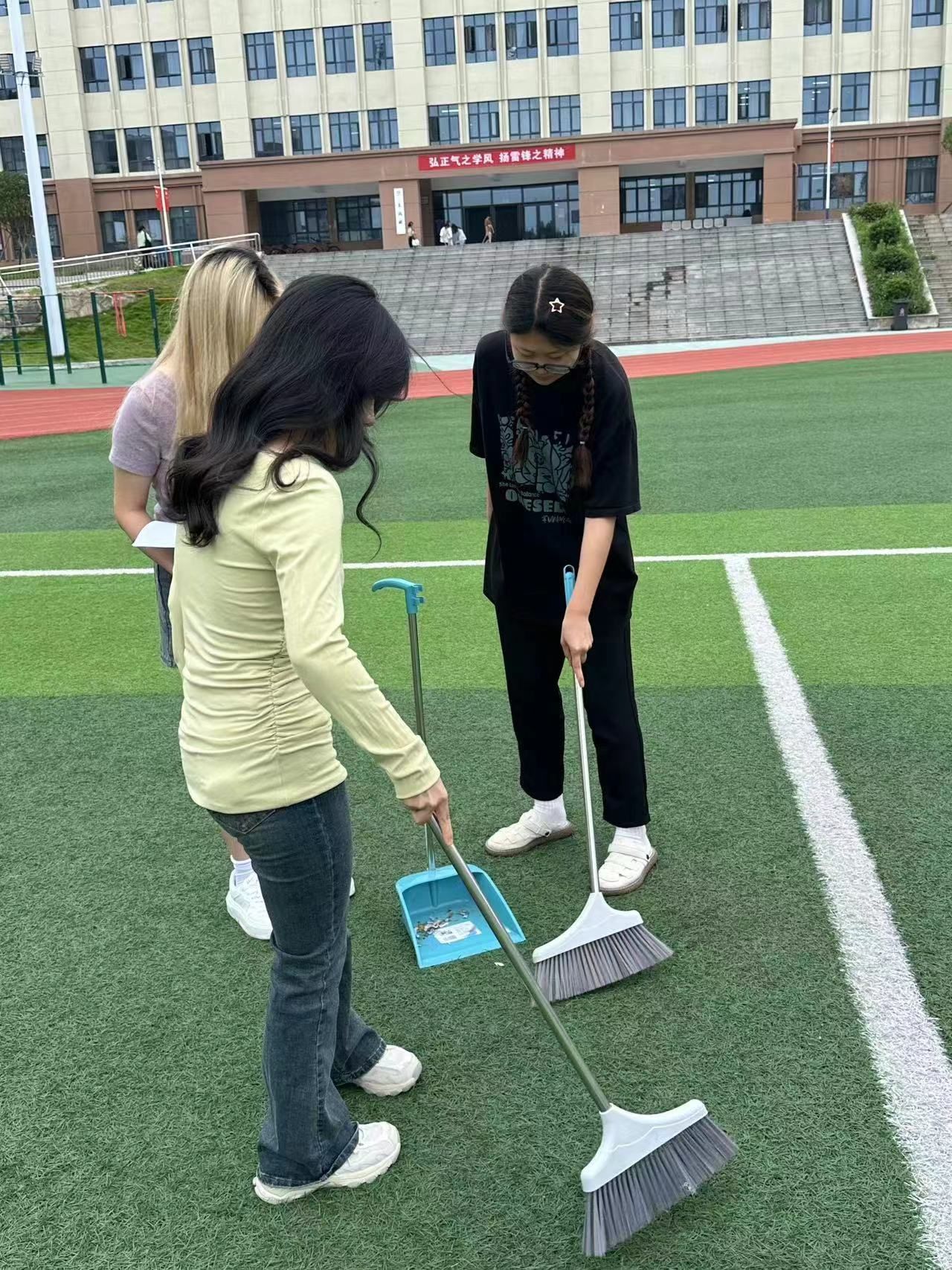 在清扫过程中,以小组为单位划分任务区域,各小组成员分工明确,互相协作,同学们发扬不怕脏、不怕累的精神,认真清理每一处垃圾,细心整理每一片落叶,坚决做到不漏一角,不留一地、不留盲区。