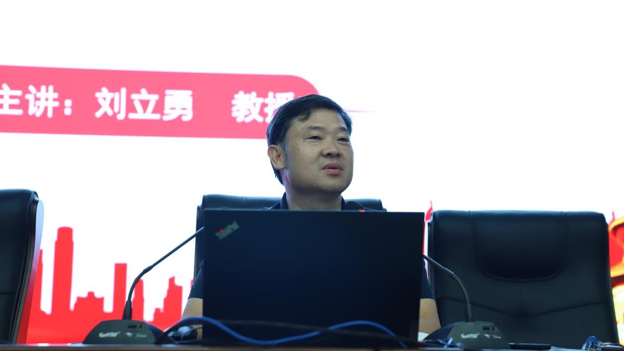 刘立勇教授首先以长沙深厚的历史文化和红色旅游资源为切入点,结合毛泽东的生平事迹,从“初心启航、探求真理,做追梦者”、“学习伟人、砥砺前行,做奋斗者”等方面展开讲述,用热情洋溢、幽默风趣的语言为大家讲述了青年毛泽东“立奇志、交奇友、读奇书、创奇事”的革命故事,带领大家一起回顾了毛主席在第一师范的求学时光以及他如何踏上革命征途的辉煌历程。激励同学们从革命先辈的奋斗故事中汲取精神力量,明确新时代大学生的责任与担当。最后,刘立勇教授以“撸起袖子加油干,扬帆奋进正当时,奋起逐浪向未来”寄语全体同学,鼓励大家坚定理想信念,勇担时代使命,为实现中华民族伟大复兴的中国梦贡献青春力量。