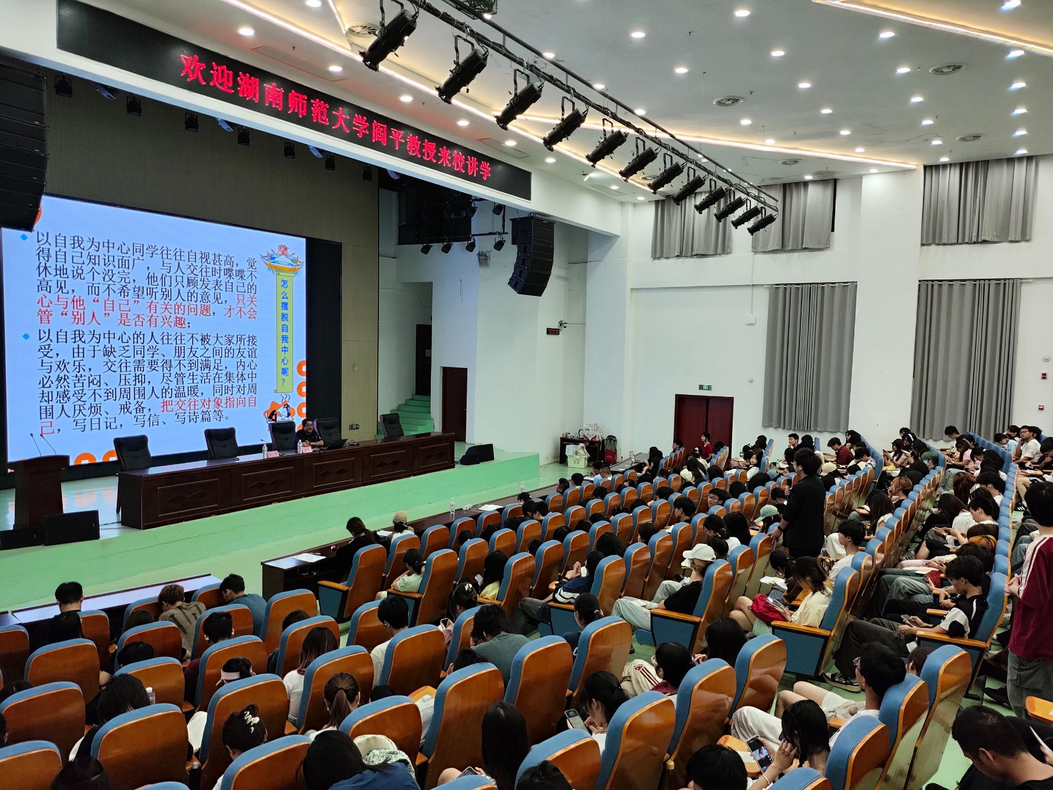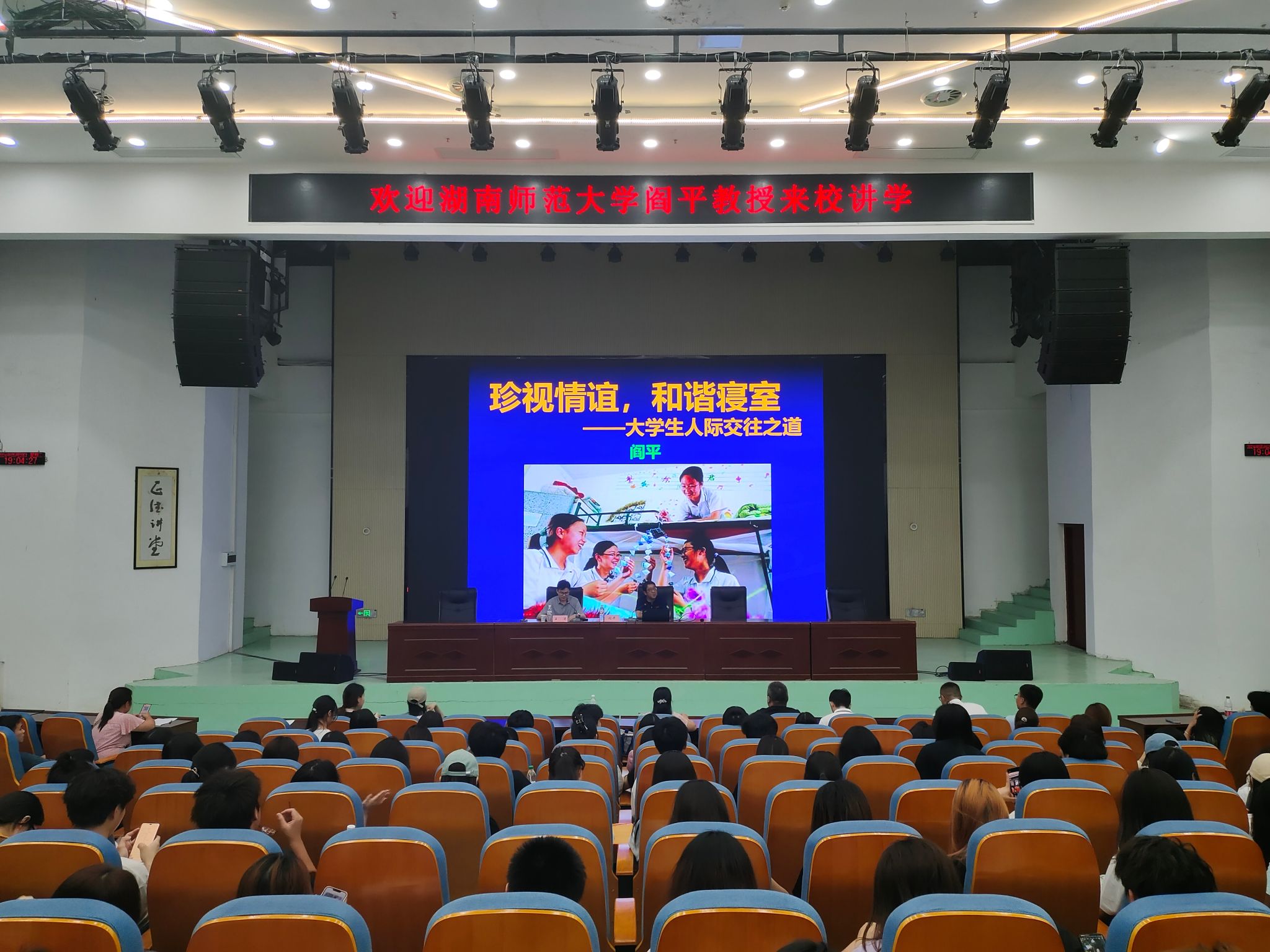 为帮助大学生构建健康积极的人际关系,学会更好地处理宿舍人际交往问题,营造温馨和谐的宿舍氛围。5月29日晚,湖南师范大学教育科学学院心理系副教授阎平受学生工作部邀请为雷锋学院师生作心理健康教育专题讲座,讲座在至诚楼L1114报告厅举办,由学生工作部副部长、心理健康教育与咨询中心主任王涛主持,雷锋学院直属支部副书记黎红梅、学工办主任颜卫林、23级辅导员以及500多名学生聆听了讲座。