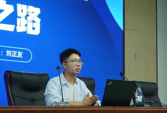 学长刘正友,现任长沙星小斗网络科技有限公司CEO,长沙星库文化传播有限责任公司联合创始人兼总经理刘正友,与大家分享了9年创业就业经验,“当难的时候,再坚持一下”刘正友学长动情地向在场的学子讲述自己从单打独斗到2022年团队拿到第一个百万级的订单再到2024年拿到第一个千万级的订单的经验。此外,他坦言,理论为盾,实践为矛,一直是他的人生航线——从校园到职场,刘正友学长在不断尝试不断挑战自己。